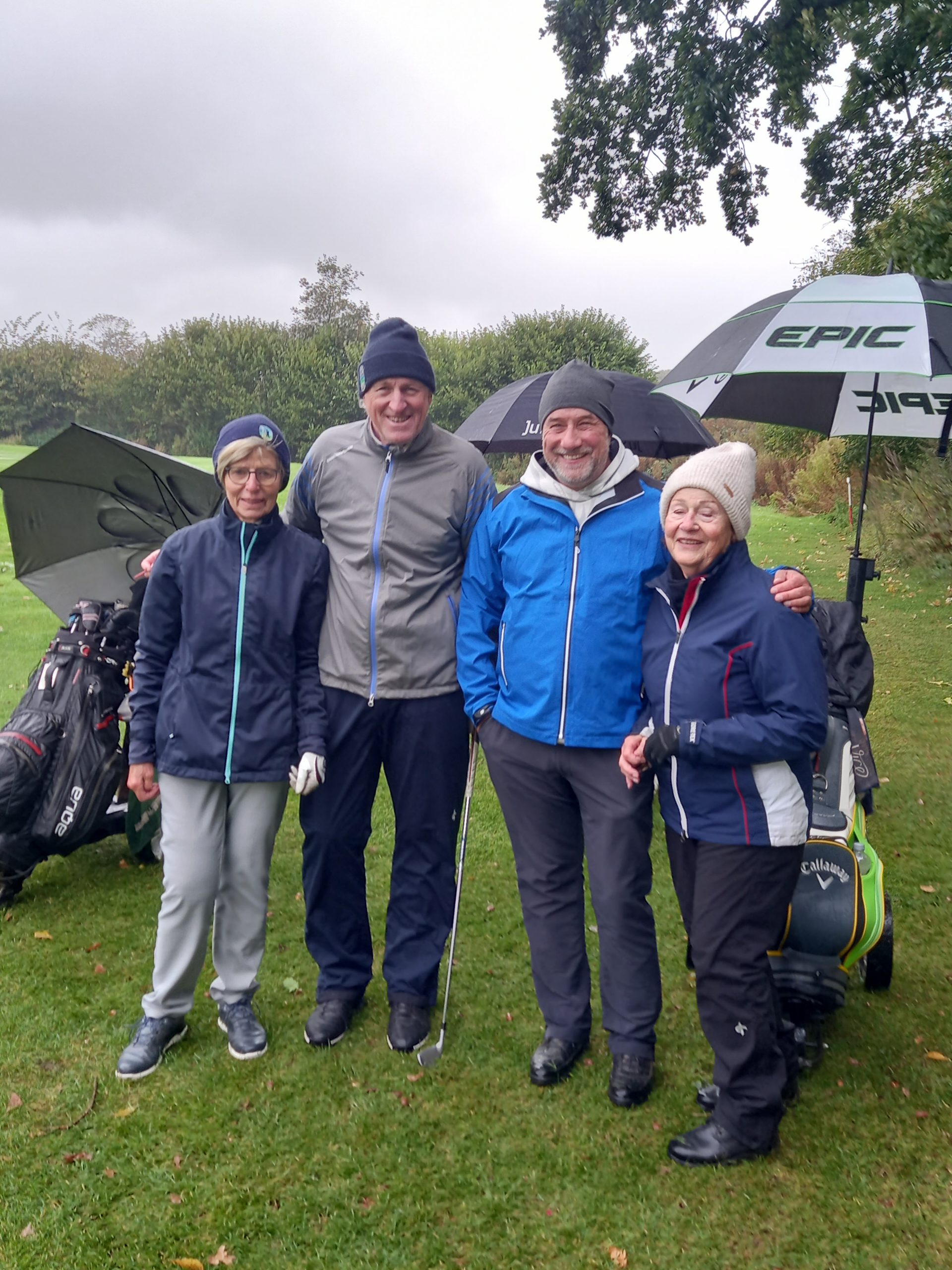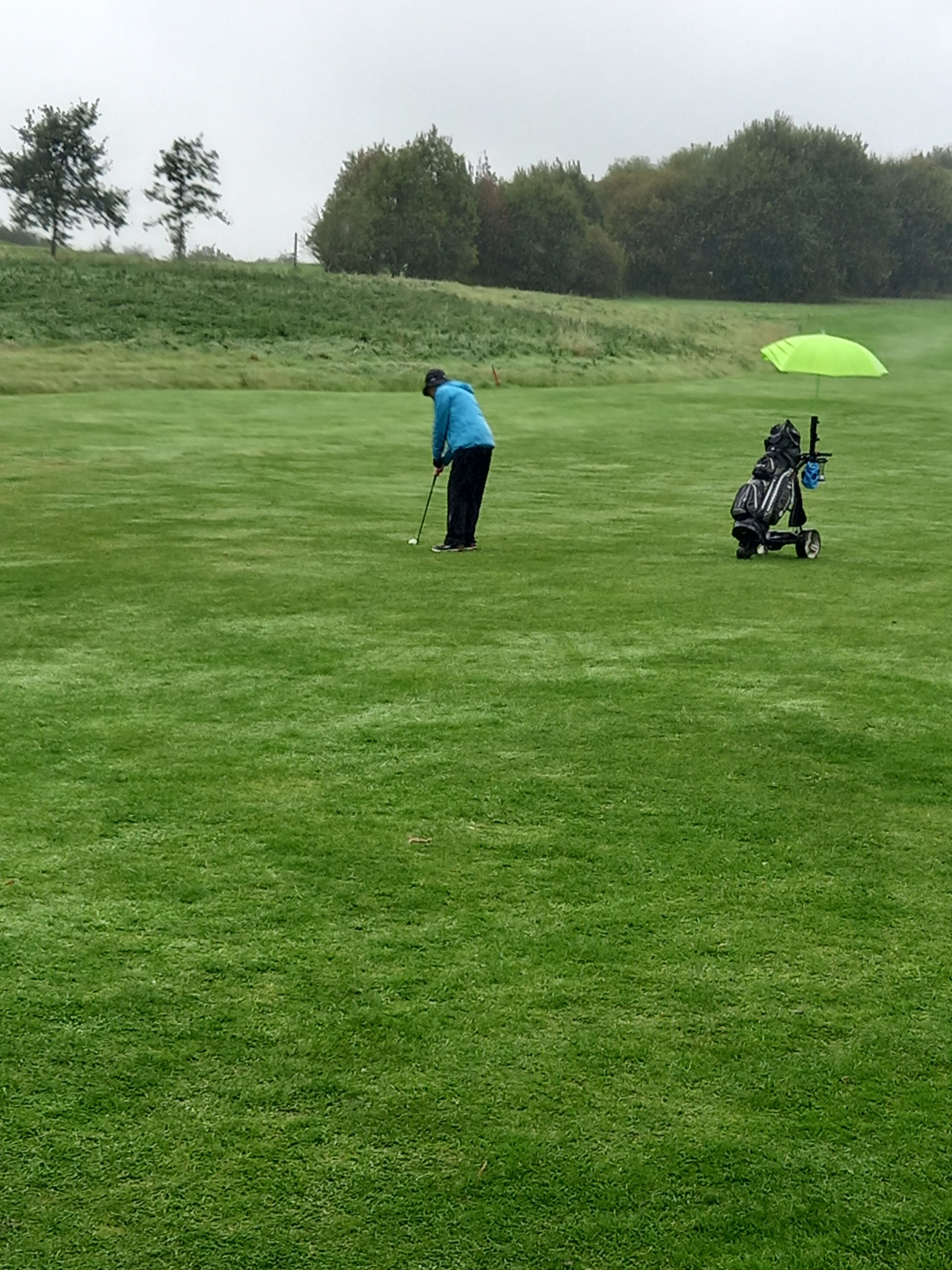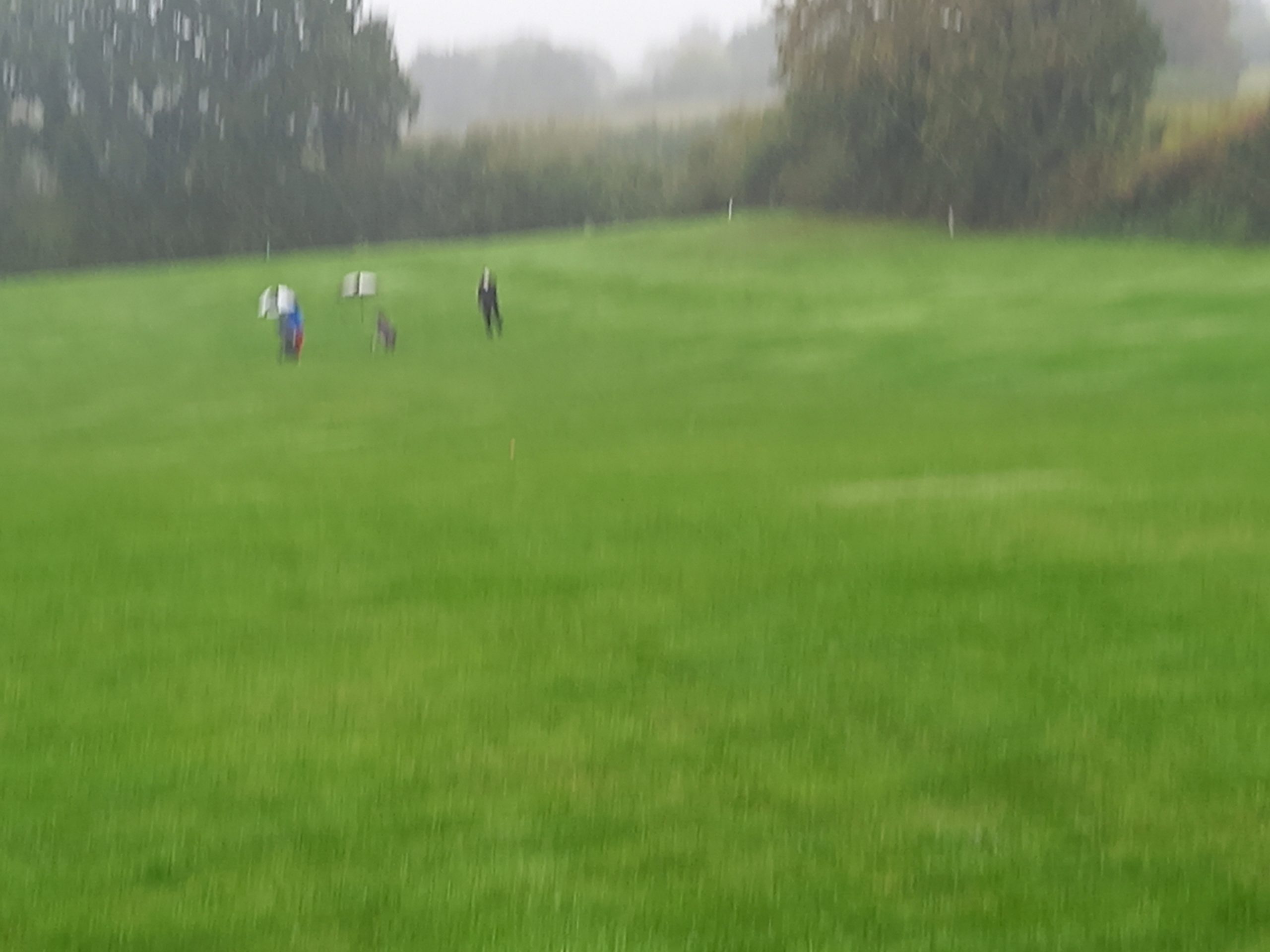 Doch der Wettergott meinte es nicht gut mit den Schleimöwen. Pünktlich zum ersten Abschlag an Tee 1 setzte der berüchtigte „Schietwetter“-Modus ein. Zunächst noch erträglich, verwandelte sich der anfängliche Nieselregen schnell in anhaltenden Dauerregen. Die kühlen Temperaturen und der aufkommende Wind taten ihr Übriges und machten die äußeren Bedingungen zunehmend schwieriger. Die Golferinnen und Golfer kämpften sich durch den Regen, doch nach 9 Löchern war der Entschluss gefasst: Das Turnier würde verkürzt werden.