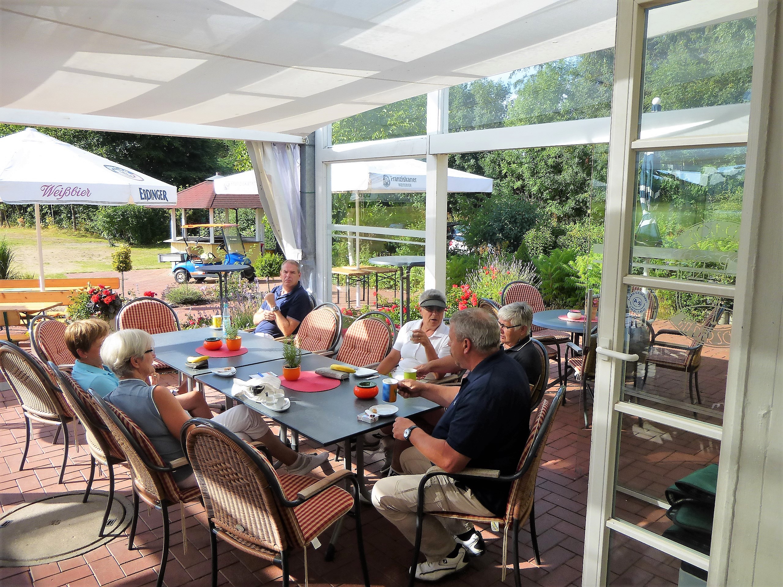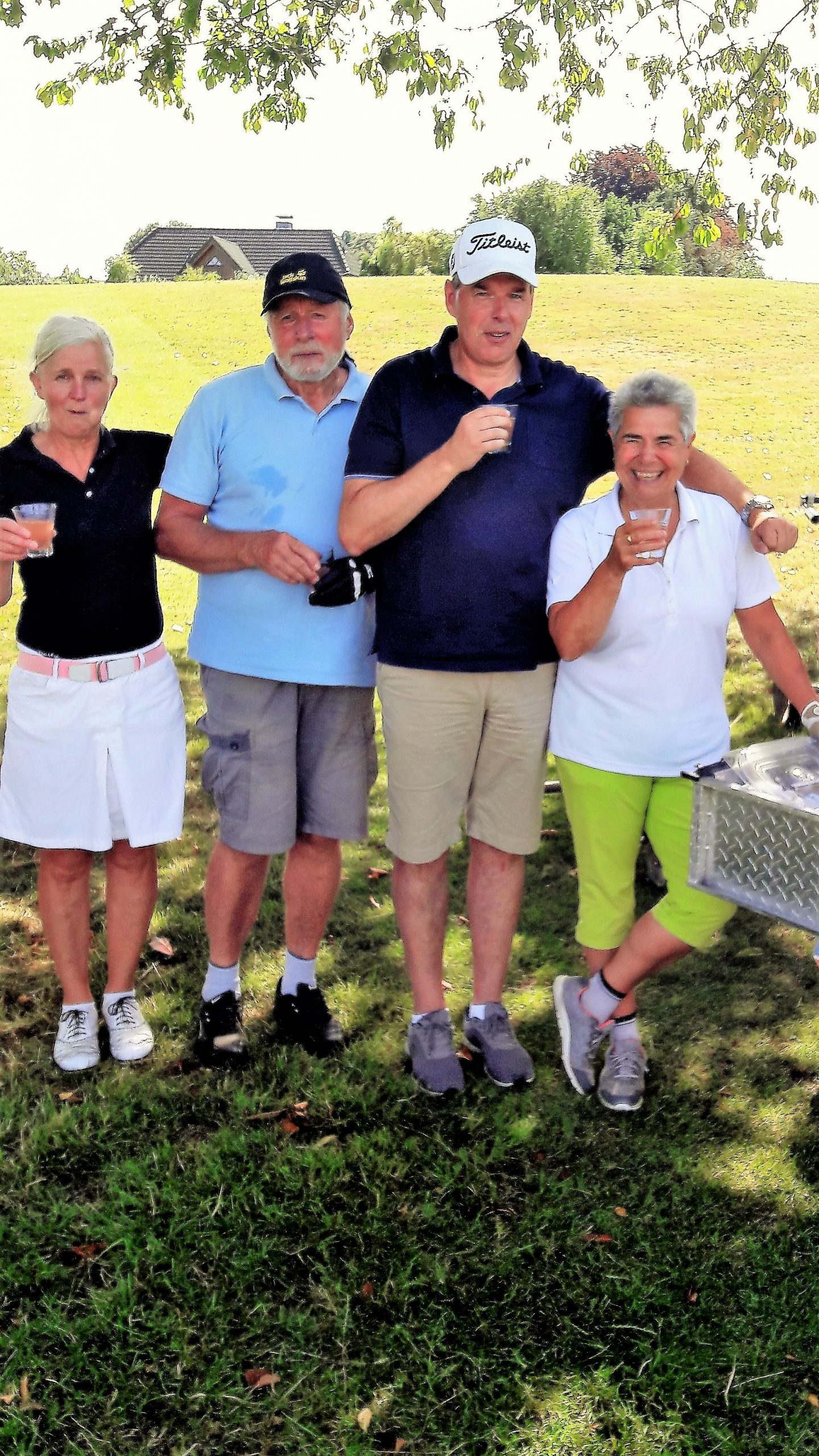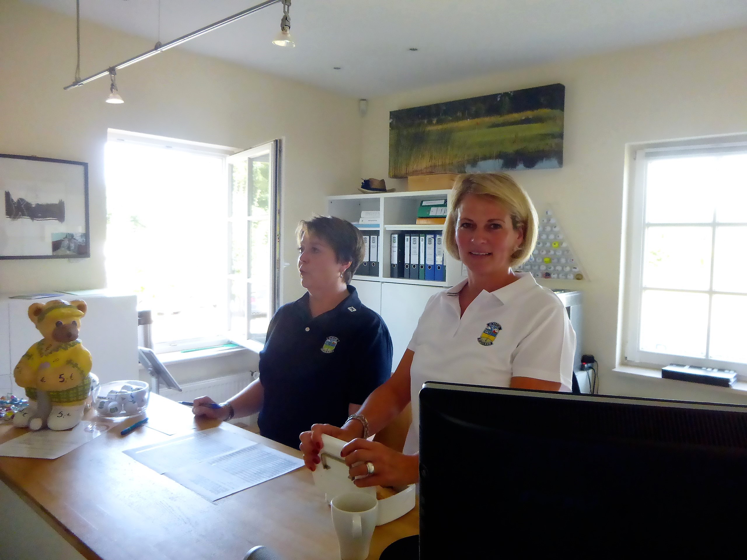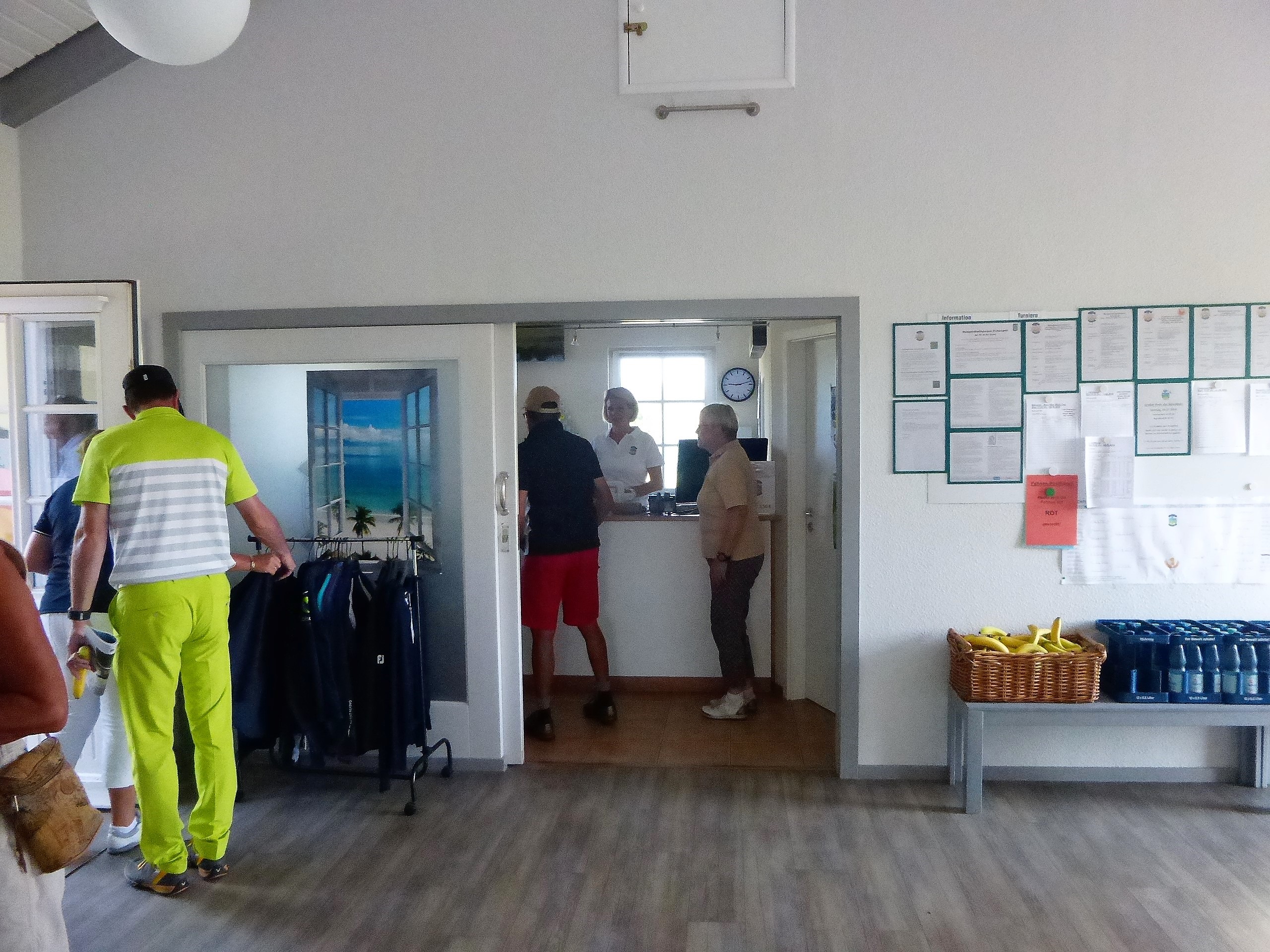 In diesem Jahr hatte das Betreiberturnier das Motto „Mallorca reloaded 2018“. Nachdem im letzten Jahr der Wettergott bei diesem Thema absolut nicht mitspielte und Dauerregen und Gewitter schickte, so dass das Turnier abgebrochen werden musste, war er in diesem Jahr dabei. Er wässerte am Tag vor dem Turnier den Platz, so dass es nicht ganz so staubig war und senkte damit auch die Temperaturen. Daher konnten die Flights dann fröhlich auf die Runde gehen. Die Flights und die Starttees wurden unter Aufsicht von Geschäftsführer Volker Schwarz von den Bürodamen gezogen. Es gab keinen, der mit seinem Team unzufrieden war. Gespielt wurde dann ein Texas-Scramble, bei dem einige Hindernisse zu überwinden waren. Zum Beispiel musste auf der Bahn 5 Speedgolf gespielt werden, auf der Bahn 17 musste ein von den Greenkeepern liebevoll dekoriertes Wintergrün angespielt werden, bei dem man nicht wusste, wie man das Loch treffen sollte. Die Bürodamen waren unterwegs mit Getränken und einem Ratespiel, bei dem man sich für 5 € und der richtigen Antwort 30 Meter erkaufen konnte.