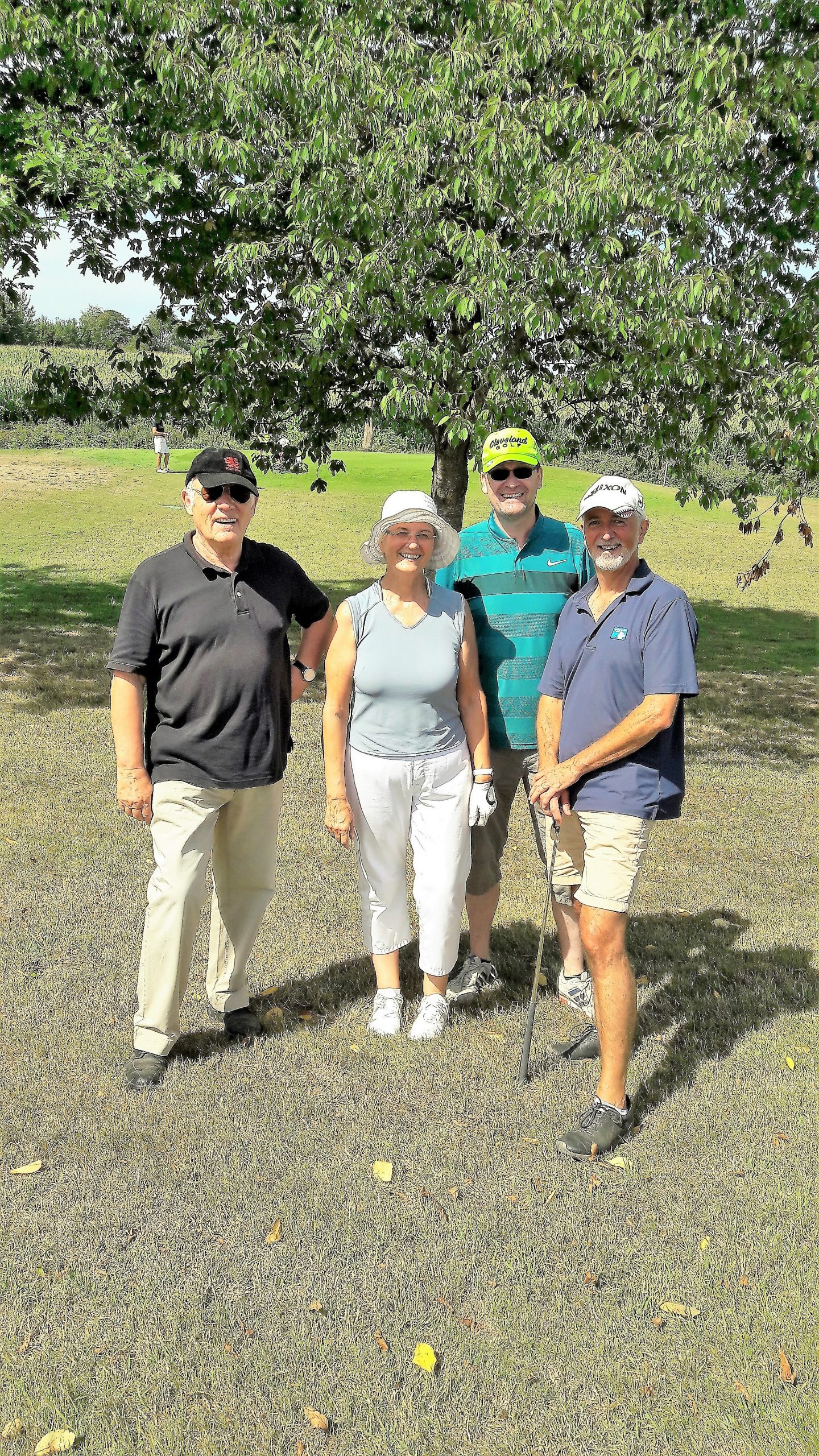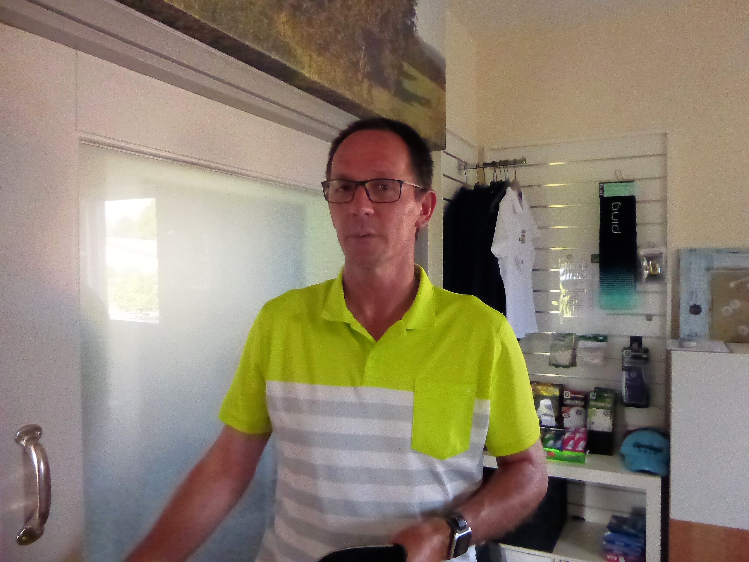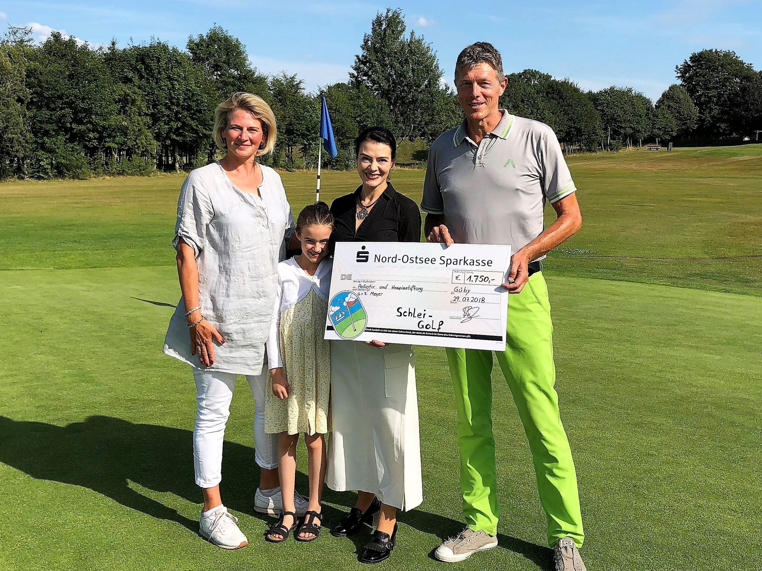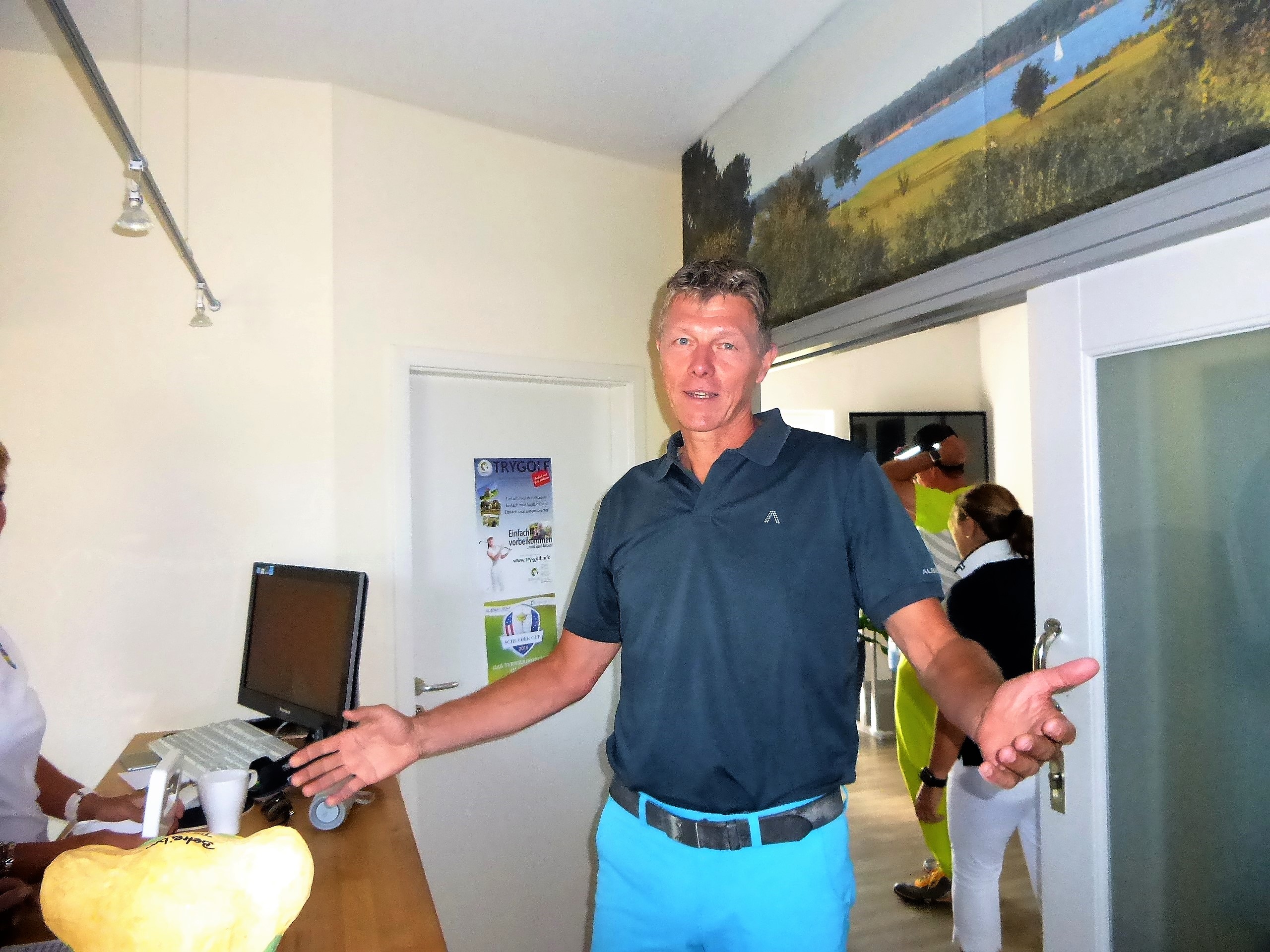 In diesem Jahr hatte das Betreiberturnier das Motto „Mallorca reloaded 2018“. Nachdem im letzten Jahr der Wettergott bei diesem Thema absolut nicht mitspielte und Dauerregen und Gewitter schickte, so dass das Turnier abgebrochen werden musste, war er in diesem Jahr dabei. Er wässerte am Tag vor dem Turnier den Platz, so dass es nicht ganz so staubig war und senkte damit auch die Temperaturen. Daher konnten die Flights dann fröhlich auf die Runde gehen. Die Flights und die Starttees wurden unter Aufsicht von Geschäftsführer Volker Schwarz von den Bürodamen gezogen. Es gab keinen, der mit seinem Team unzufrieden war. Gespielt wurde dann ein Texas-Scramble, bei dem einige Hindernisse zu überwinden waren. Zum Beispiel musste auf der Bahn 5 Speedgolf gespielt werden, auf der Bahn 17 musste ein von den Greenkeepern liebevoll dekoriertes Wintergrün angespielt werden, bei dem man nicht wusste, wie man das Loch treffen sollte. Die Bürodamen waren unterwegs mit Getränken und einem Ratespiel, bei dem man sich für 5 € und der richtigen Antwort 30 Meter erkaufen konnte.