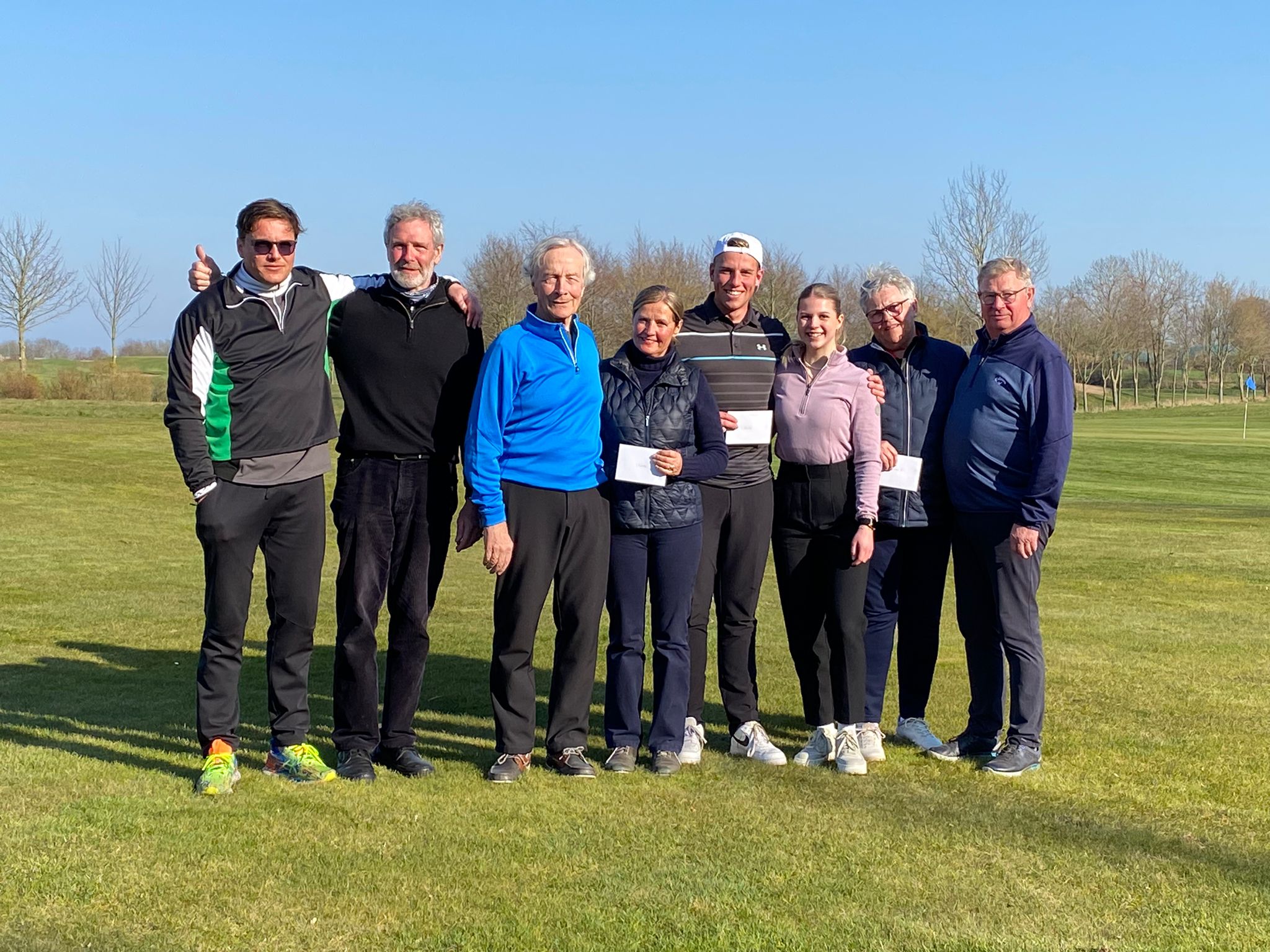 Den Preis für den Bruttosieger nahmen Borchert und Harms entgegen. Den Preis für den Sieg in der Nettowertung ging an die Zweitplatzierten Clubmeisterin der Damen Anne Mette Jensen und Leif Holst Jensen mit 37 Nettopunkten. Den 2. Preis erhielt das Duo aus dem amtierenden Clubmeister der Supersenioren Manfred Eisenmenger und einem Gast vom GC Hubbelrath Marc-Tilo Reucher (34 Punkte). Den 3. Preis erhielten Angela und Claus Schömers (34 Punkte).