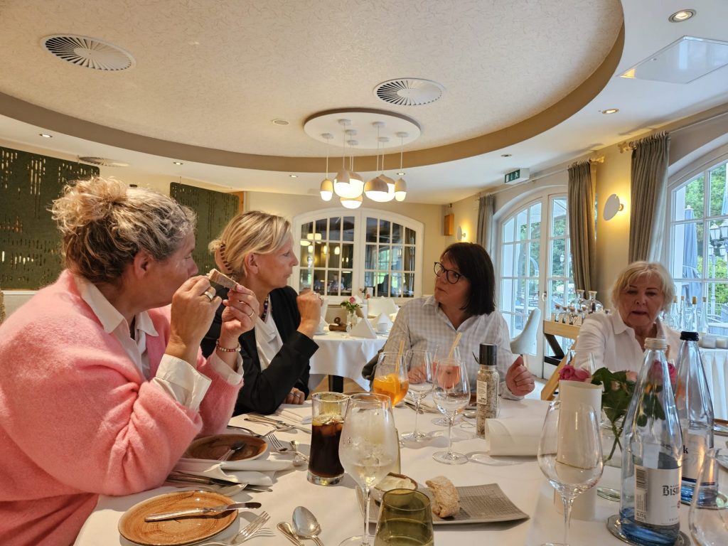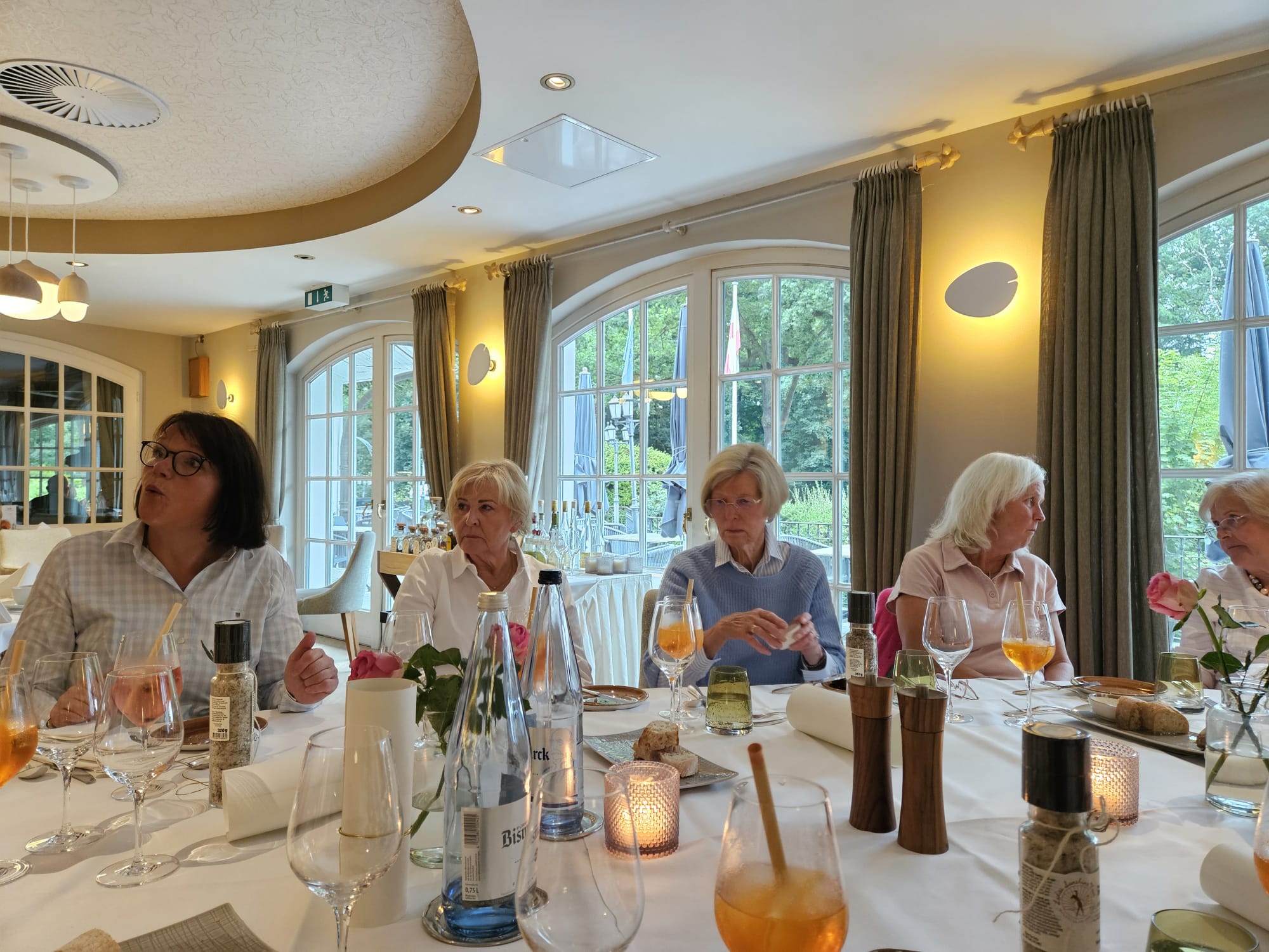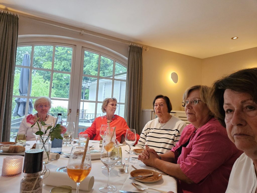 Nach einem gemütlichen Kaffeetrinken mit Kuchen wurde die Reise zum Hotel Waldhaus in Reinbek fortgesetzt. Dort wartete am Abend ein köstliches 3-Gänge-Menü mit Wein und Wasser auf die Schleimöwen. Ein besonderer Dank ging an Jutta Weissbrod, die wie jedes Jahr ein wunderbares Programm organisiert hatte. Bei ausgelassener Stimmung, guten Gesprächen und dem ein oder anderen Glas Wein klang der erste Tag gemütlich aus.