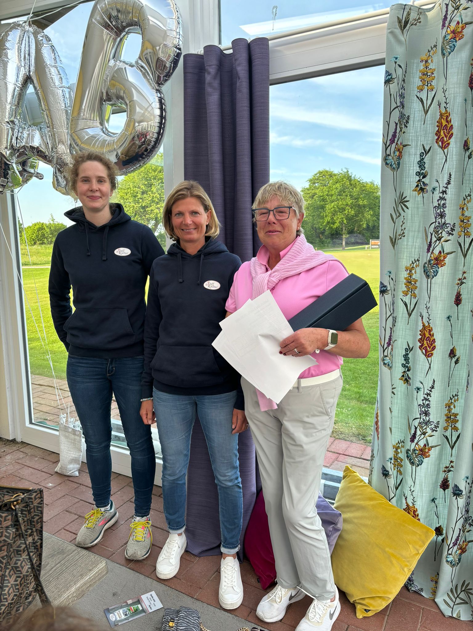Nach dem Turnier überreichten Henrike Appel und Eike Schütte von der StoffKultur unserer Angelika Autzen ein Präsent als Wertschätzung und Anerkennung für ihre herausragende Organisation der Turnierserie. Die StoffKultur in Eckernförde vertritt die Firma JAB ANSTOETZ vor Ort und ist der Ansprechpartner für den Ladies Cup.