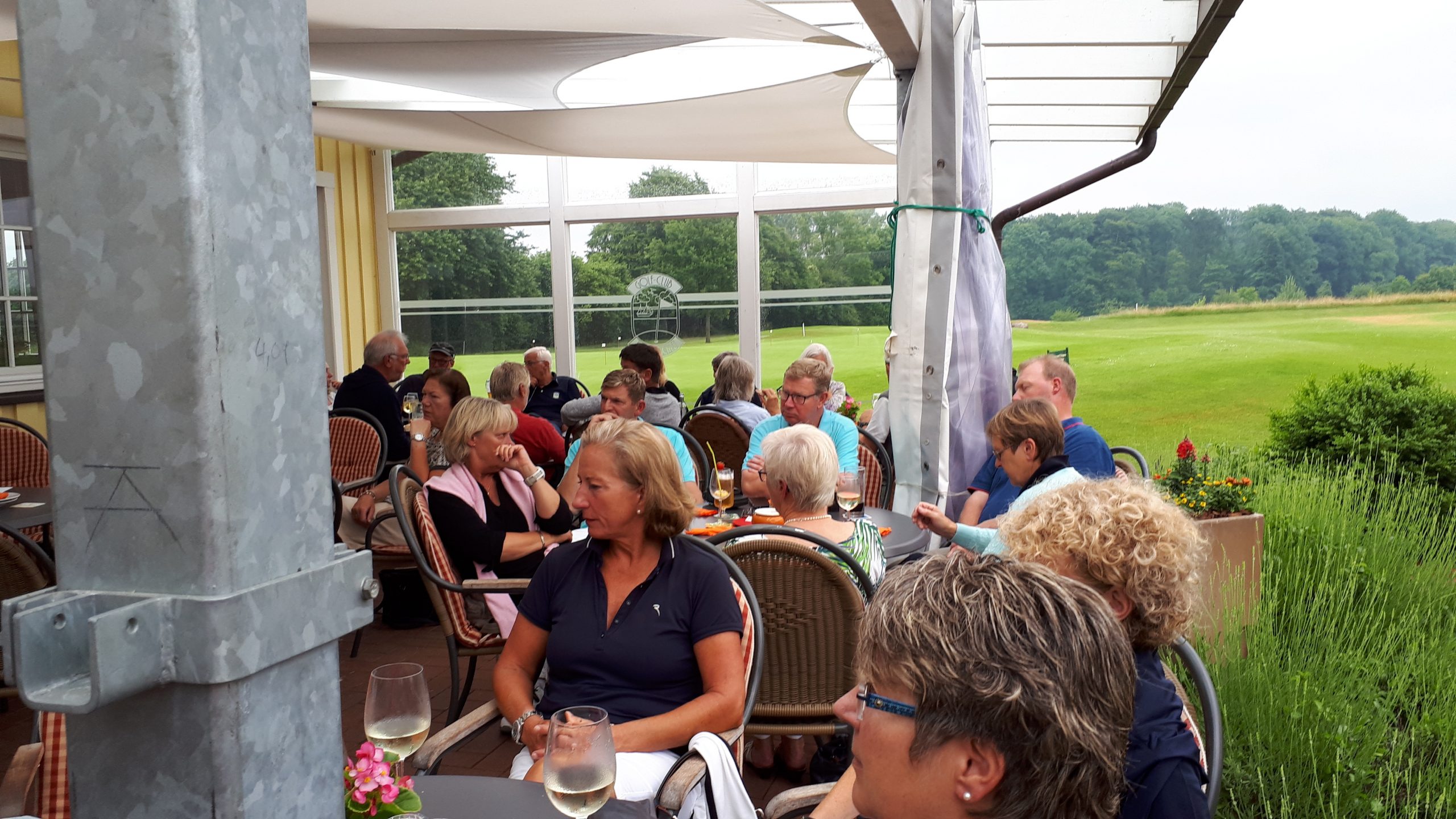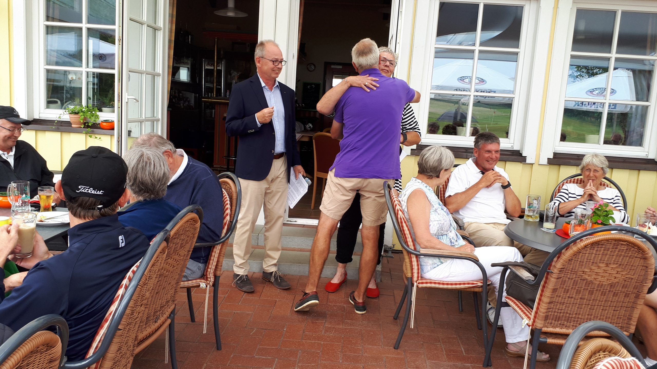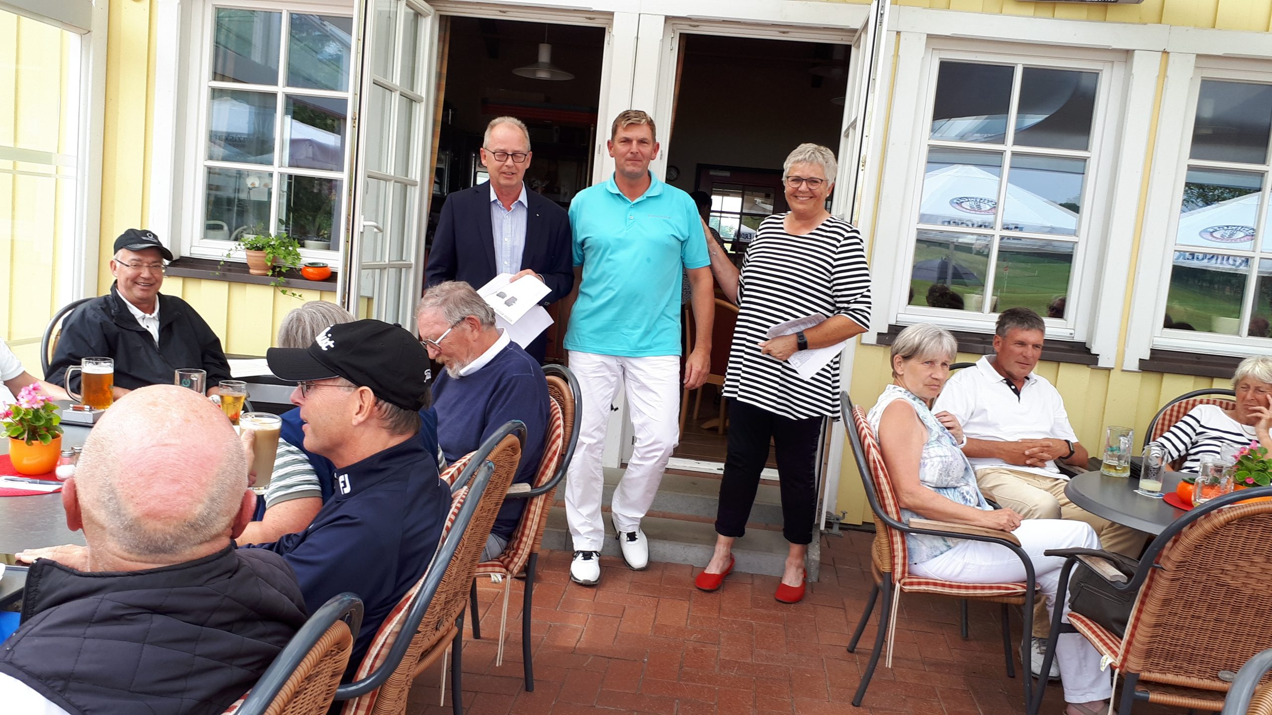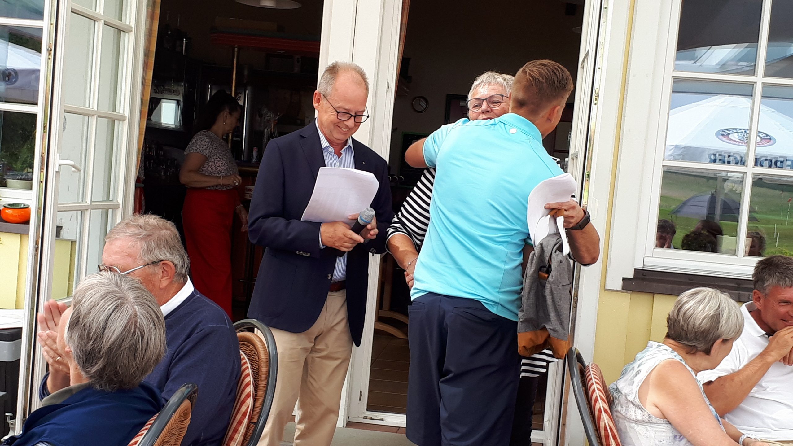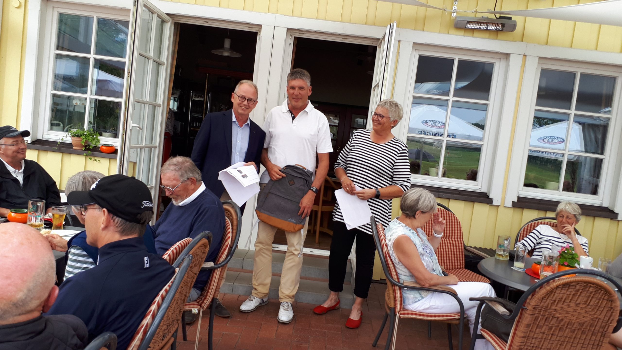 Es ist schon eigenartig, die ganzen Wochen vor diesem Turnier der Fördesparkasse nur allerbestes Wetter und dann pünktlich zum Startsignal fing es an zu nieseln und hörte erst bei Turnierende auf. Aber der guten Laune tat es keinen Abbruch, schließlich war man ja für einen guten Zweck unterwegs. Nachdem man sich dann das leckere Essen von Gudrun Raschke und ihrem Team hat schmecken lassen, ging es zur Siegerehrung durch Ulrich Boike. Netto-Sieger in der Klasse A wurde Tim-Hendrick Borchert, der gleichzeitig auch Brutto-Sieger wurde. In der Klasse B siegte Hermann Autzen und in der Klasse C Thomas Jundel. Den Brutto-Sieg bei den Damen holte sich Anna Bejeuhr vom GC Lohersand. Zusammen mit der Förderung der Sparkasse für jeden Nettopunkt, der Startgebühr und Spenden kam dann ein Betrag von 4.300 € zusammen.