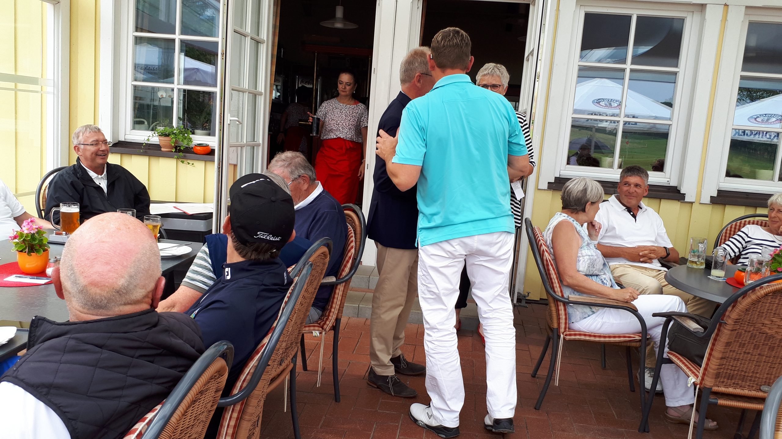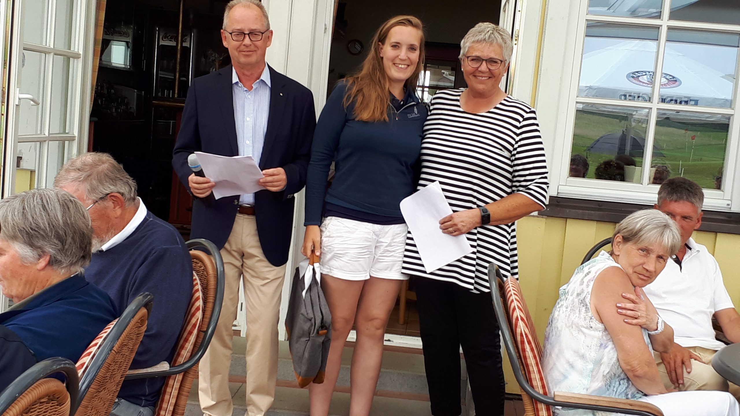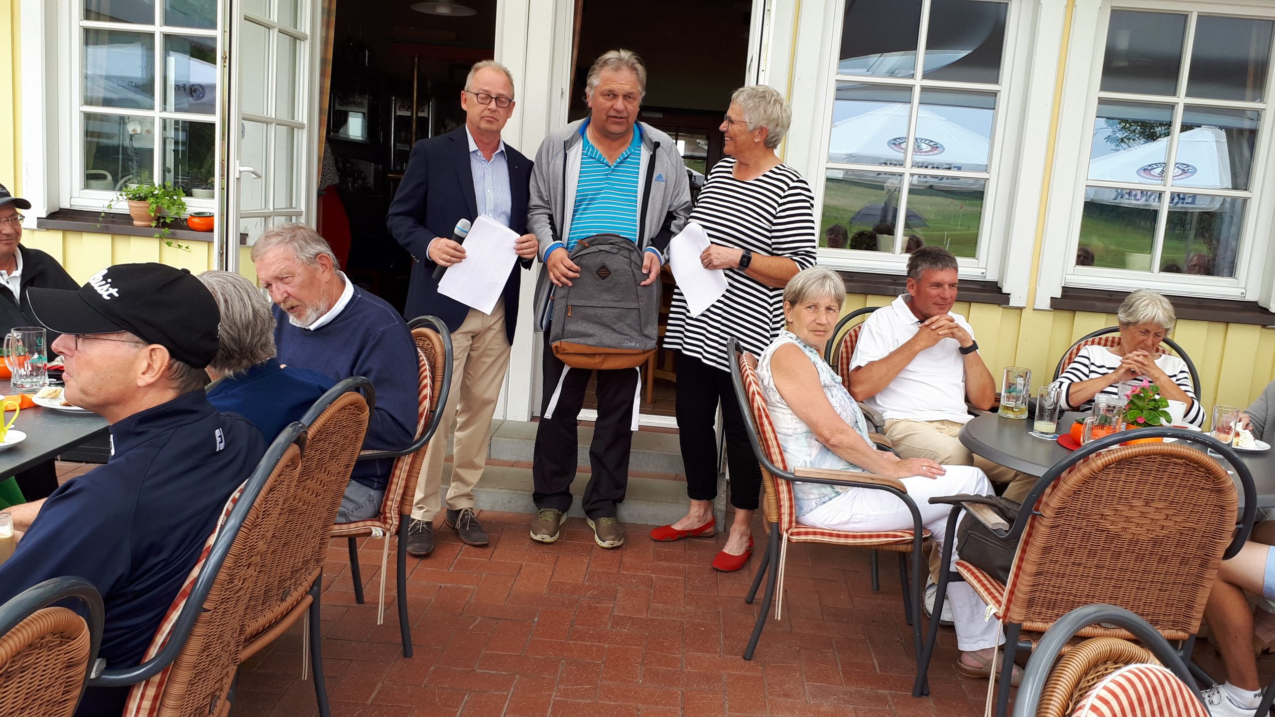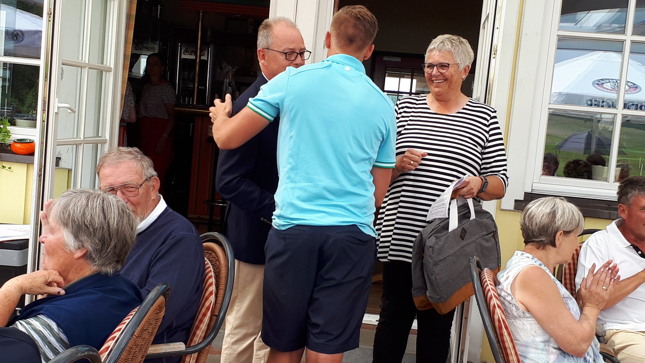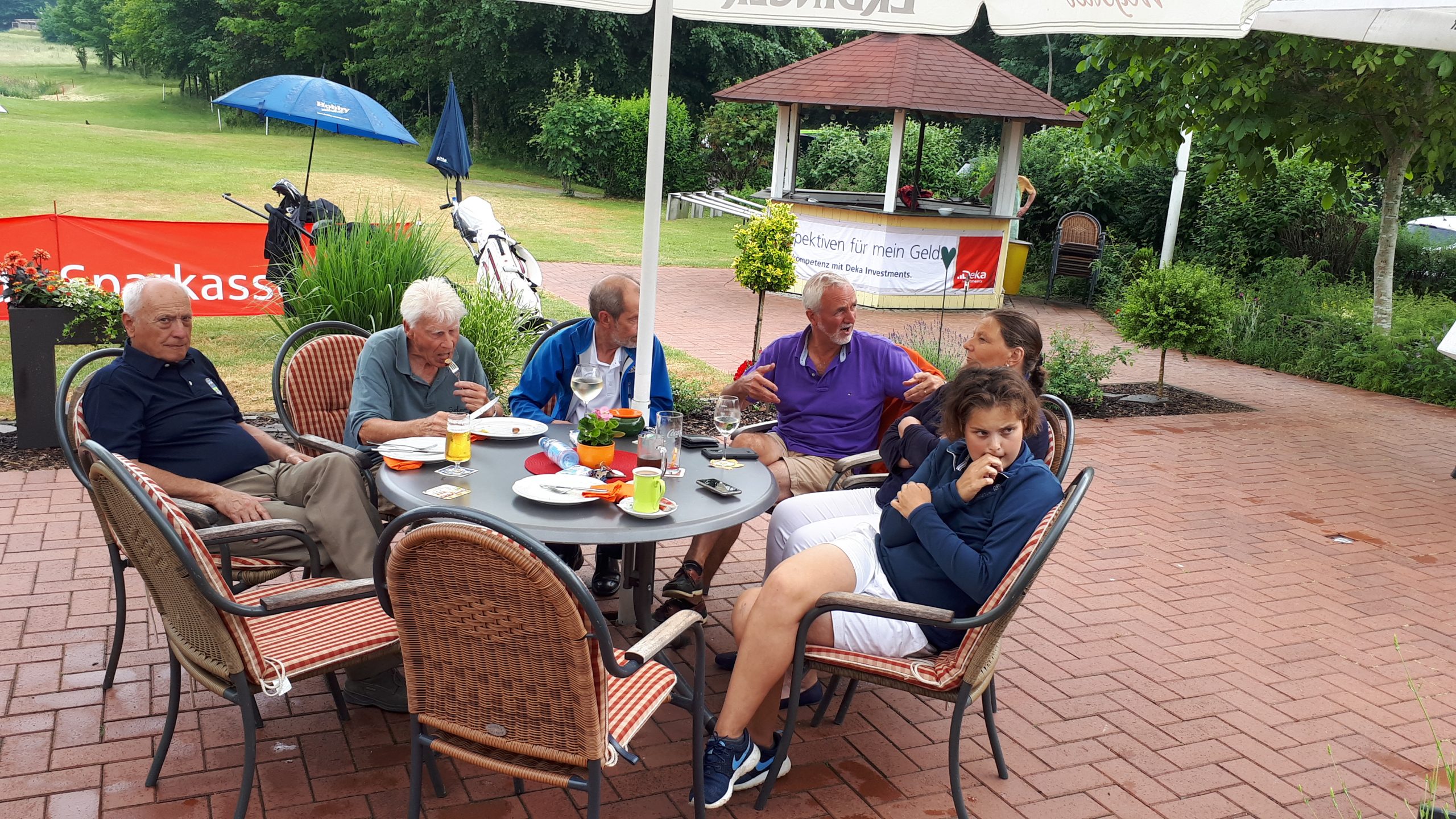 Es ist schon eigenartig, die ganzen Wochen vor diesem Turnier der Fördesparkasse nur allerbestes Wetter und dann pünktlich zum Startsignal fing es an zu nieseln und hörte erst bei Turnierende auf. Aber der guten Laune tat es keinen Abbruch, schließlich war man ja für einen guten Zweck unterwegs. Nachdem man sich dann das leckere Essen von Gudrun Raschke und ihrem Team hat schmecken lassen, ging es zur Siegerehrung durch Ulrich Boike. Netto-Sieger in der Klasse A wurde Tim-Hendrick Borchert, der gleichzeitig auch Brutto-Sieger wurde. In der Klasse B siegte Hermann Autzen und in der Klasse C Thomas Jundel. Den Brutto-Sieg bei den Damen holte sich Anna Bejeuhr vom GC Lohersand. Zusammen mit der Förderung der Sparkasse für jeden Nettopunkt, der Startgebühr und Spenden kam dann ein Betrag von 4.300 € zusammen.