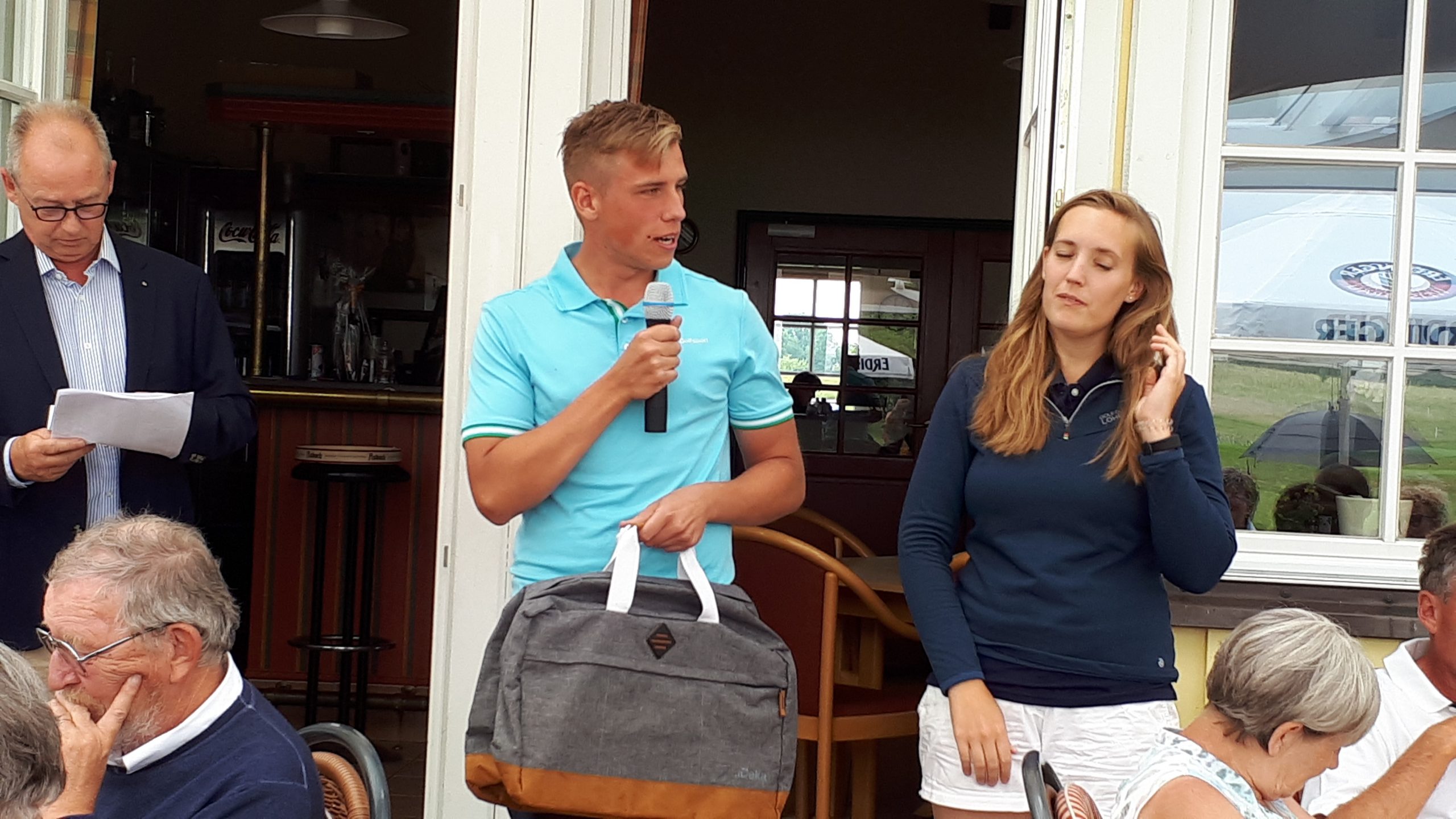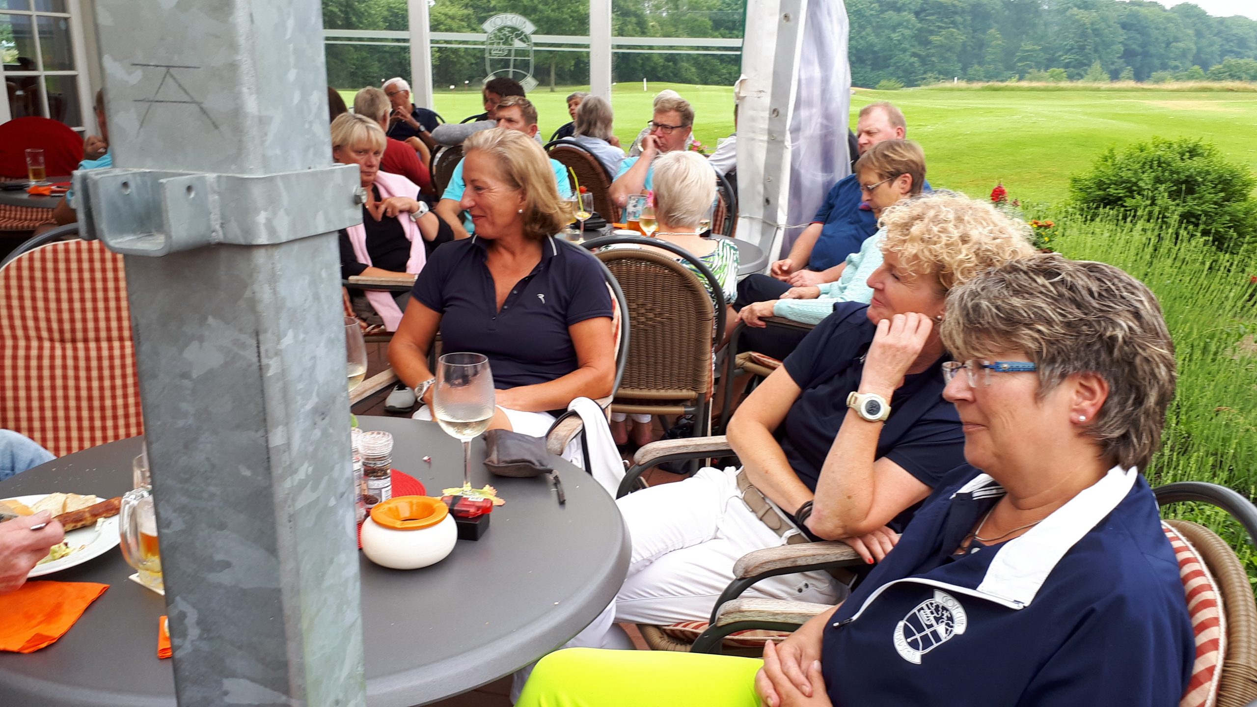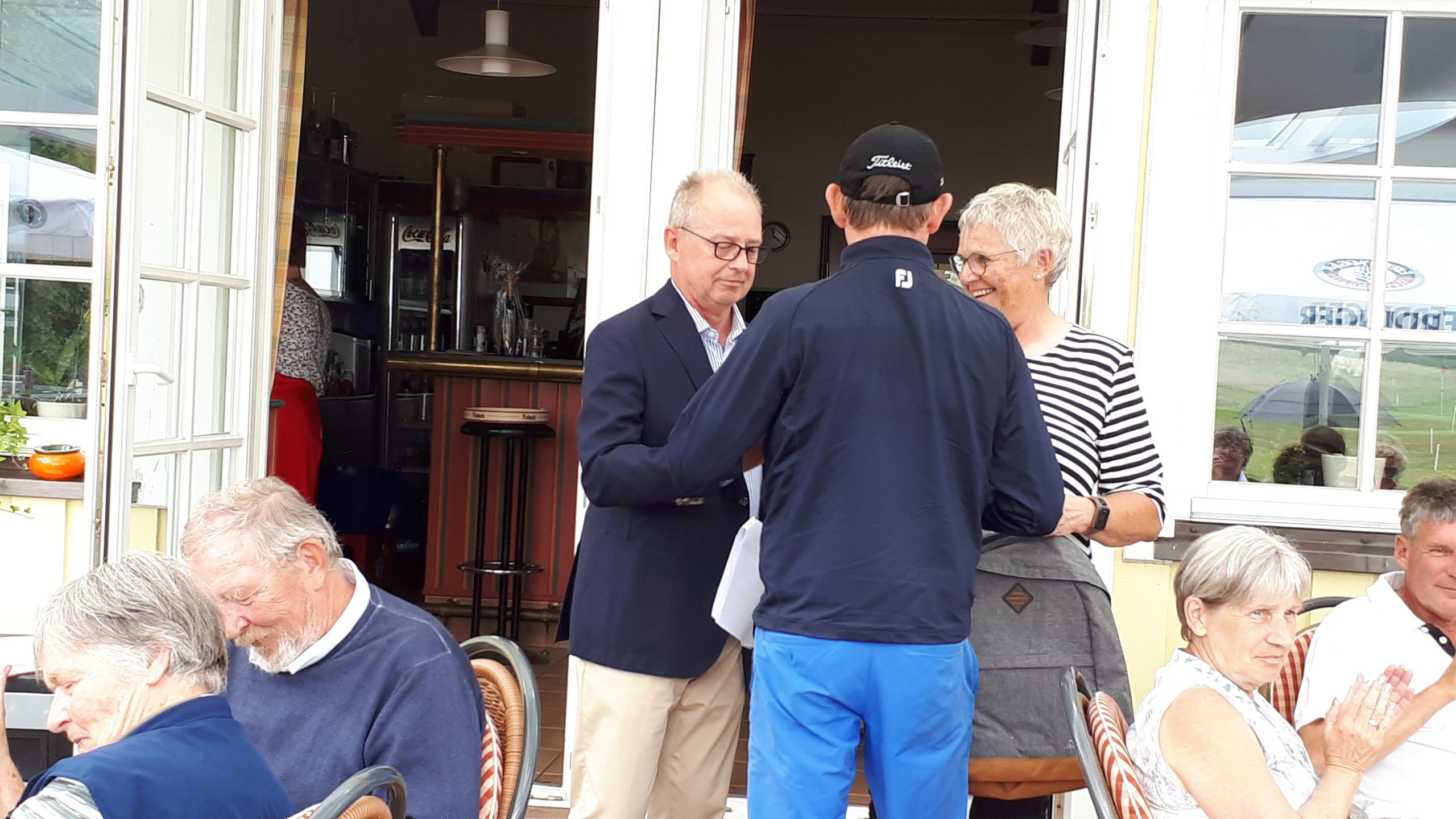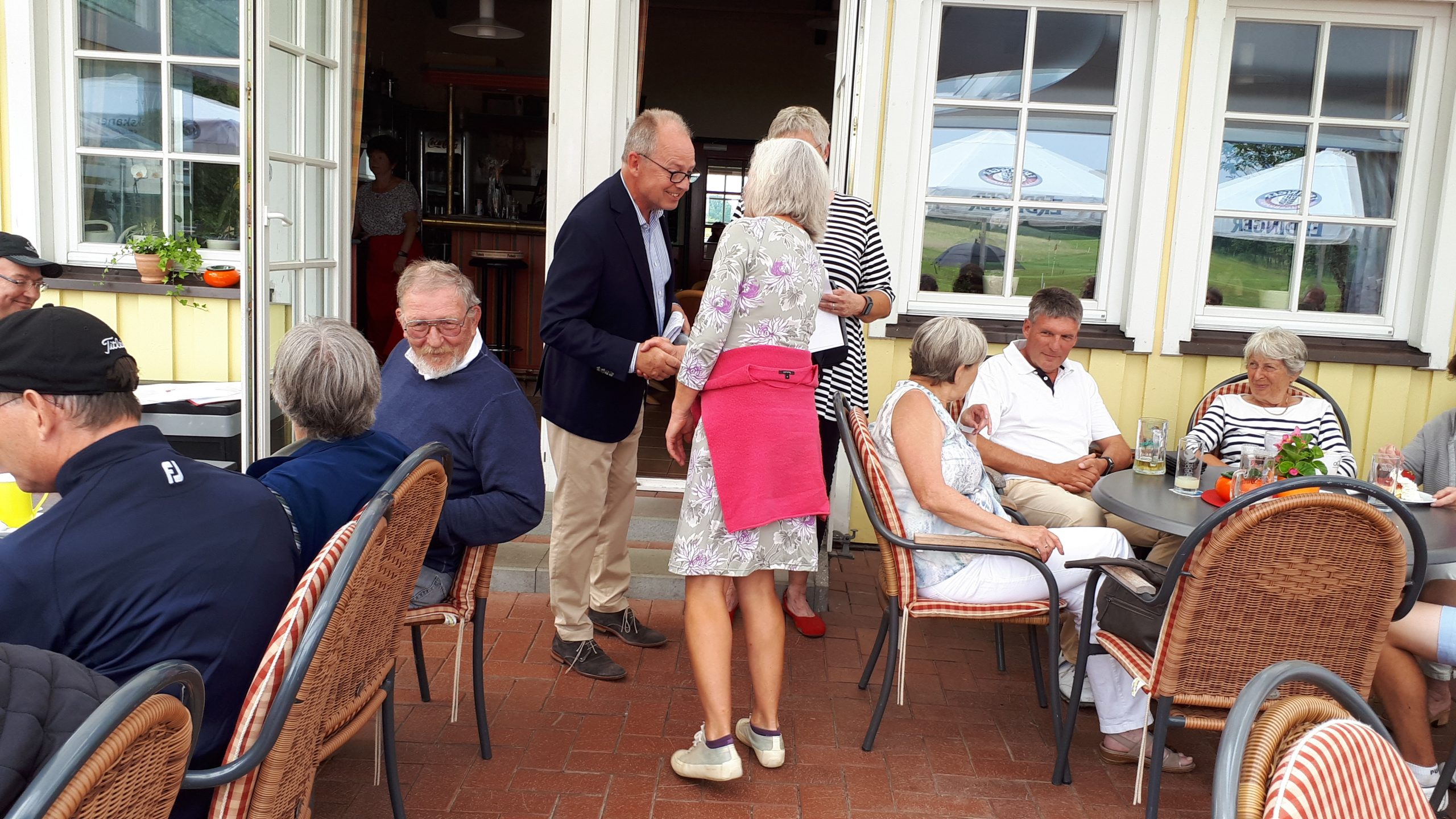Es ist schon eigenartig, die ganzen Wochen vor diesem Turnier der Fördesparkasse nur allerbestes Wetter und dann pünktlich zum Startsignal fing es an zu nieseln und hörte erst bei Turnierende auf. Aber der guten Laune tat es keinen Abbruch, schließlich war man ja für einen guten Zweck unterwegs. Nachdem man sich dann das leckere Essen von Gudrun Raschke und ihrem Team hat schmecken lassen, ging es zur Siegerehrung durch Ulrich Boike. Netto-Sieger in der Klasse A wurde Tim-Hendrick Borchert, der gleichzeitig auch Brutto-Sieger wurde. In der Klasse B siegte Hermann Autzen und in der Klasse C Thomas Jundel. Den Brutto-Sieg bei den Damen holte sich Anna Bejeuhr vom GC Lohersand. Zusammen mit der Förderung der Sparkasse für jeden Nettopunkt, der Startgebühr und Spenden kam dann ein Betrag von 4.300 € zusammen.