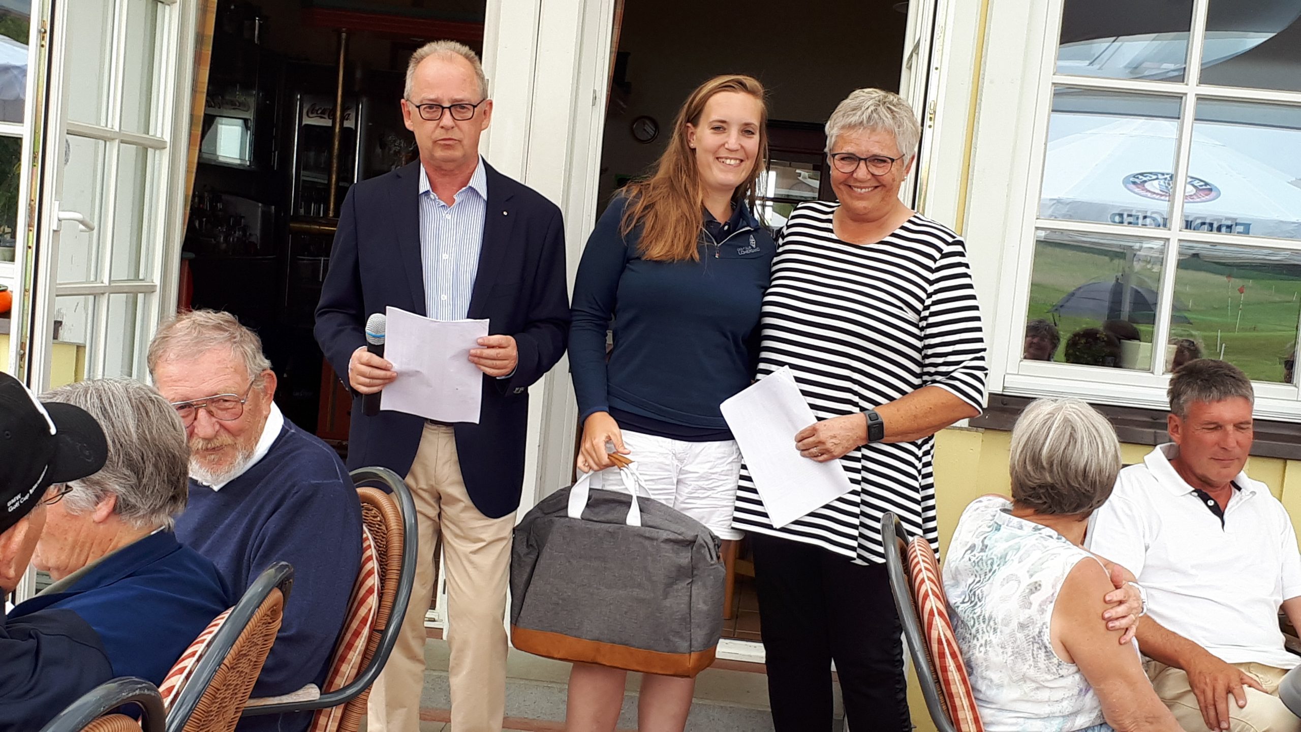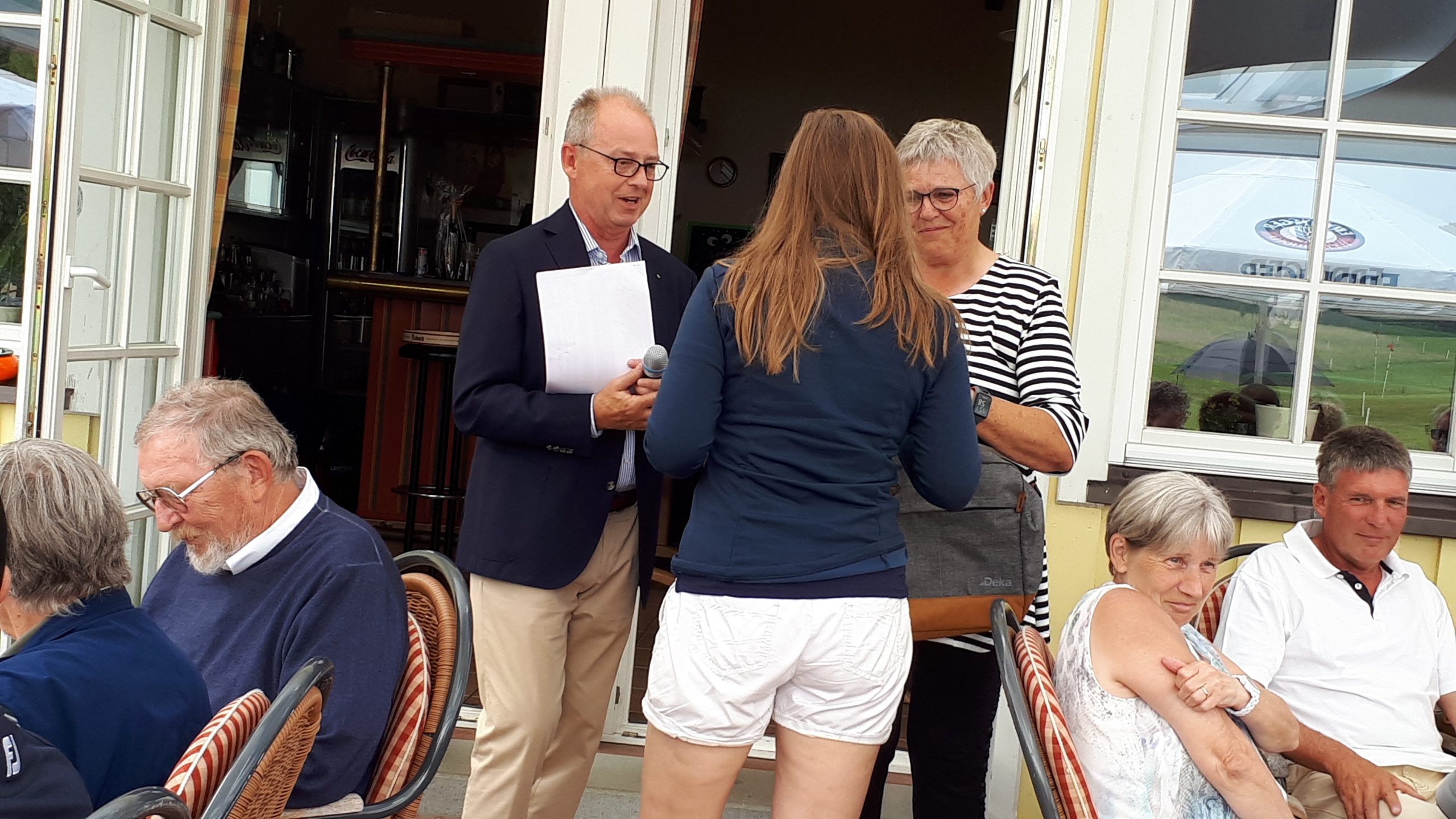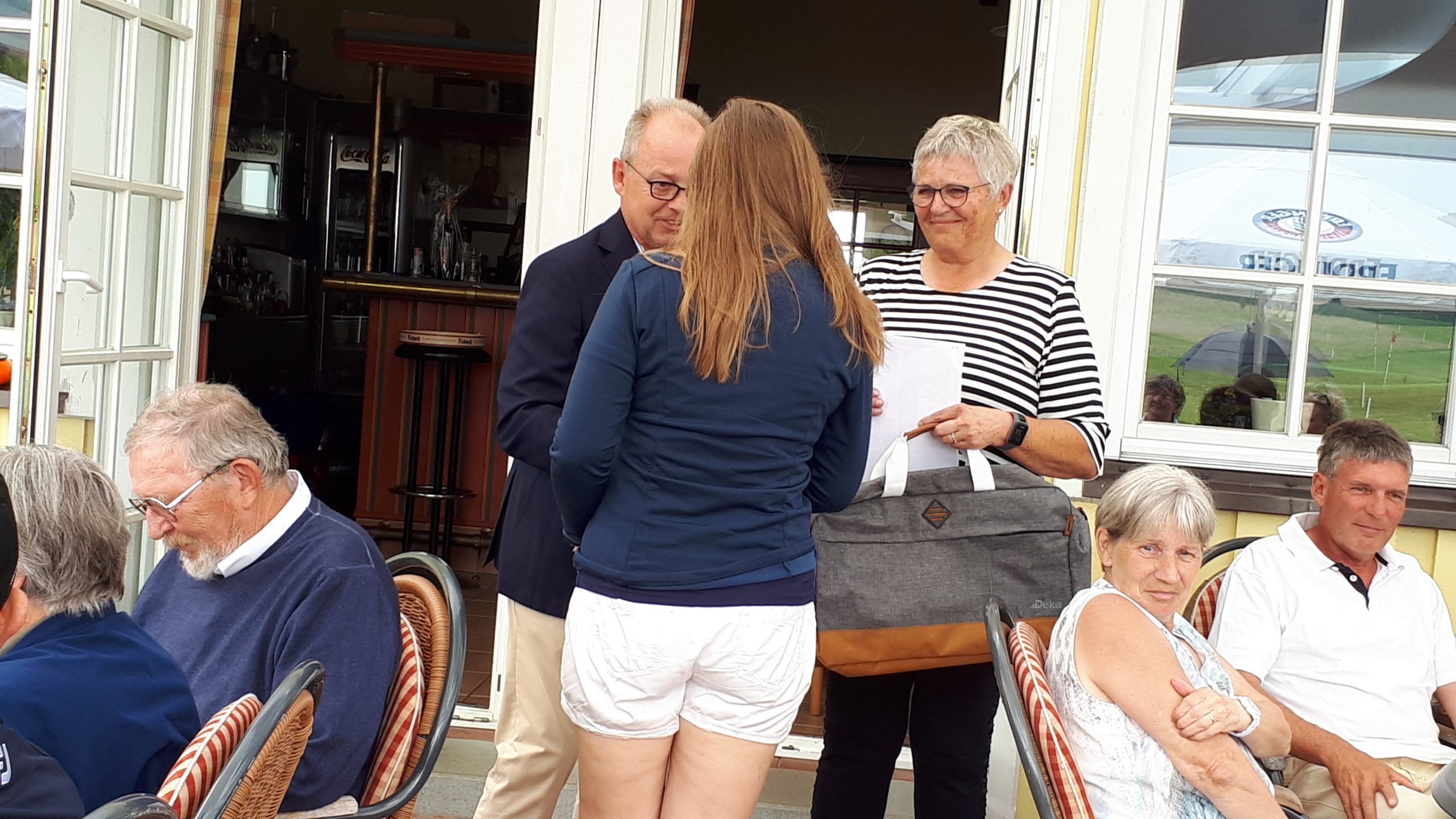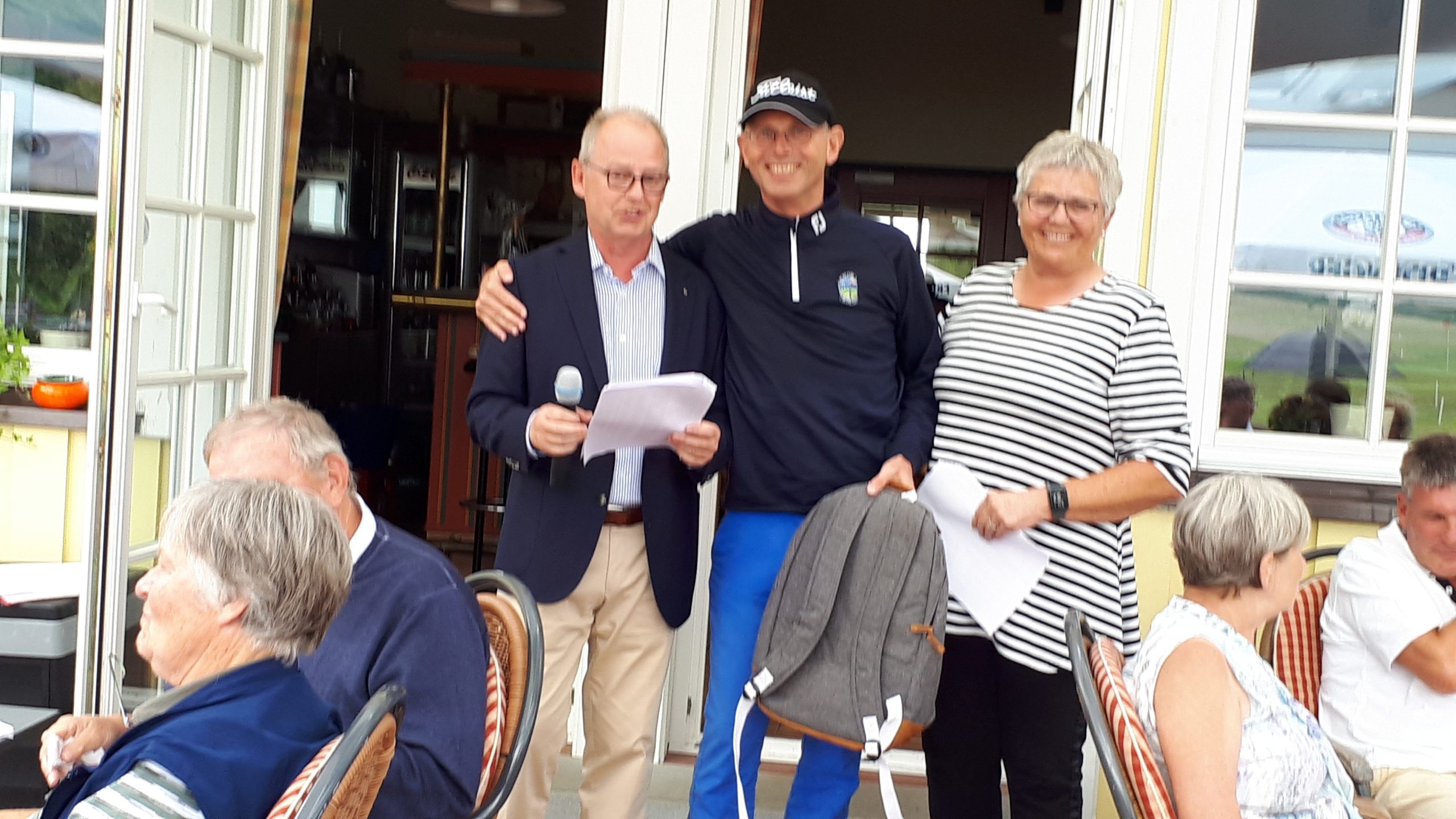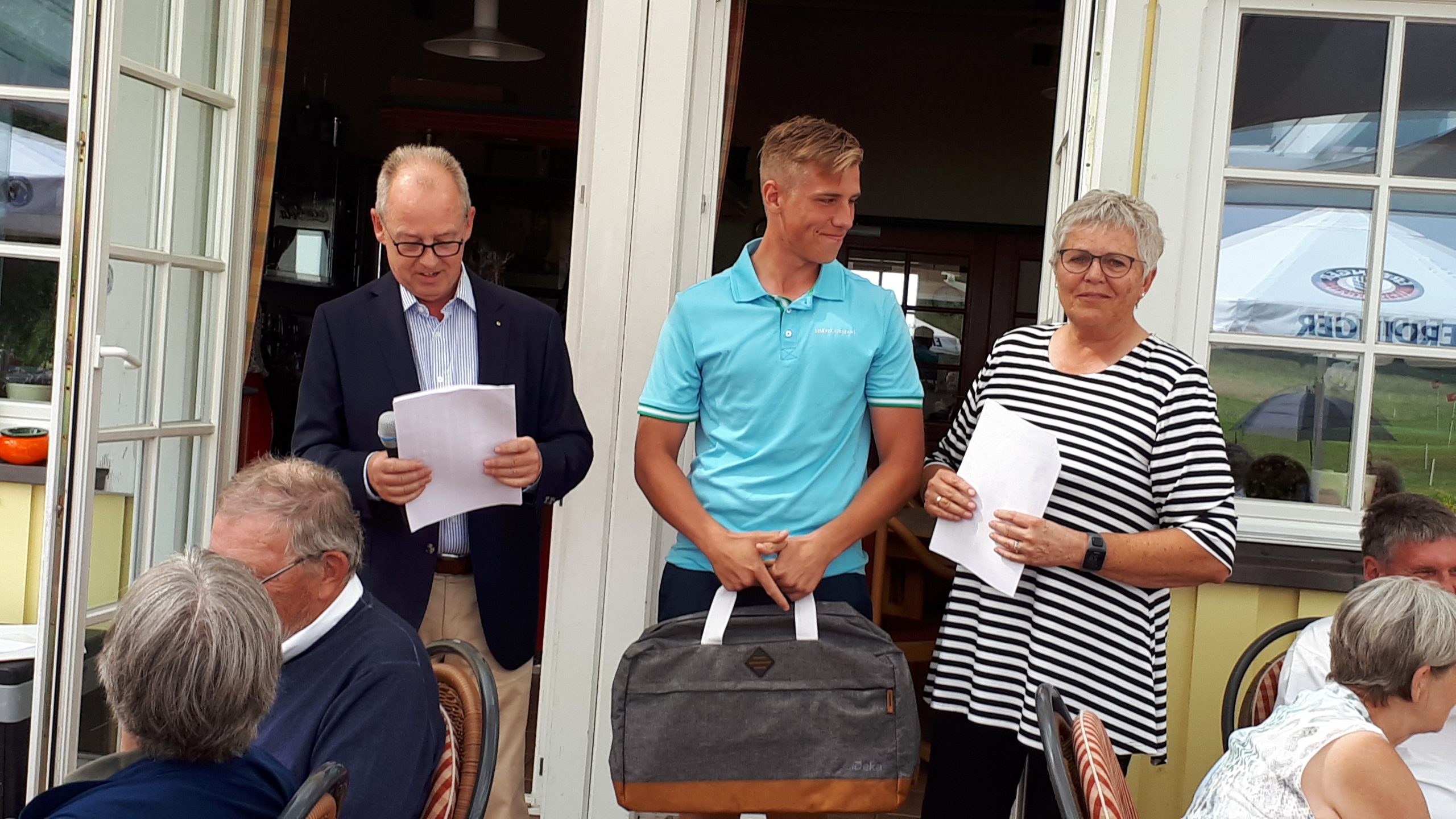 Es ist schon eigenartig, die ganzen Wochen vor diesem Turnier der Fördesparkasse nur allerbestes Wetter und dann pünktlich zum Startsignal fing es an zu nieseln und hörte erst bei Turnierende auf. Aber der guten Laune tat es keinen Abbruch, schließlich war man ja für einen guten Zweck unterwegs. Nachdem man sich dann das leckere Essen von Gudrun Raschke und ihrem Team hat schmecken lassen, ging es zur Siegerehrung durch Ulrich Boike. Netto-Sieger in der Klasse A wurde Tim-Hendrick Borchert, der gleichzeitig auch Brutto-Sieger wurde. In der Klasse B siegte Hermann Autzen und in der Klasse C Thomas Jundel. Den Brutto-Sieg bei den Damen holte sich Anna Bejeuhr vom GC Lohersand. Zusammen mit der Förderung der Sparkasse für jeden Nettopunkt, der Startgebühr und Spenden kam dann ein Betrag von 4.300 € zusammen.