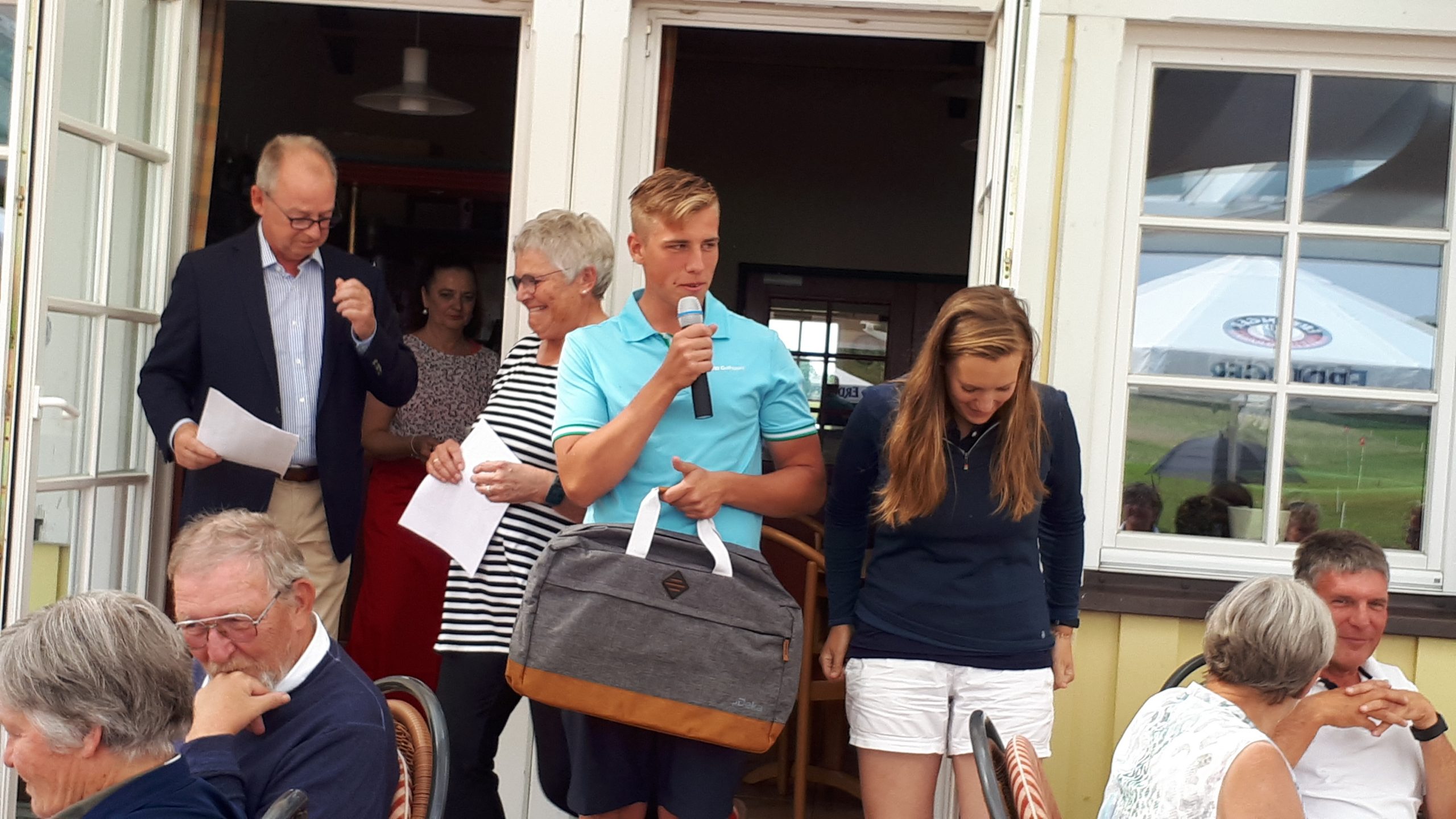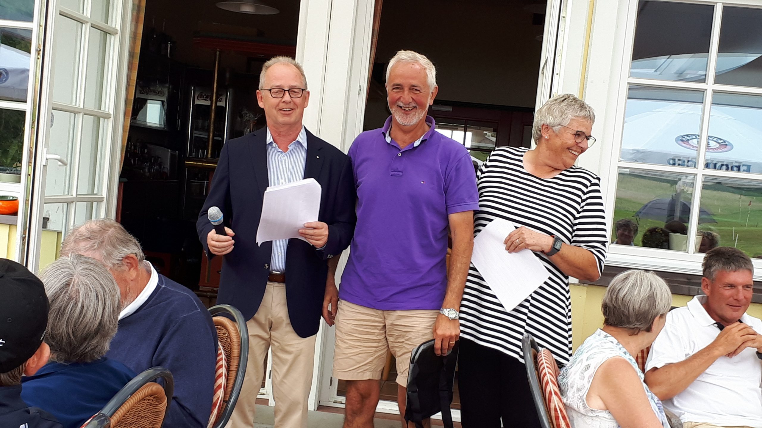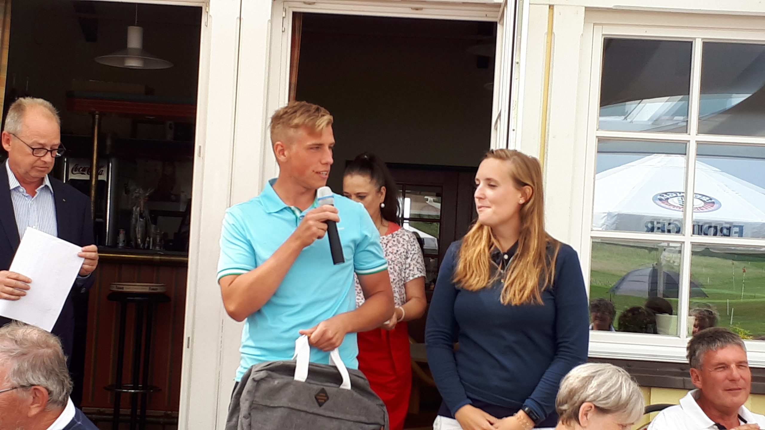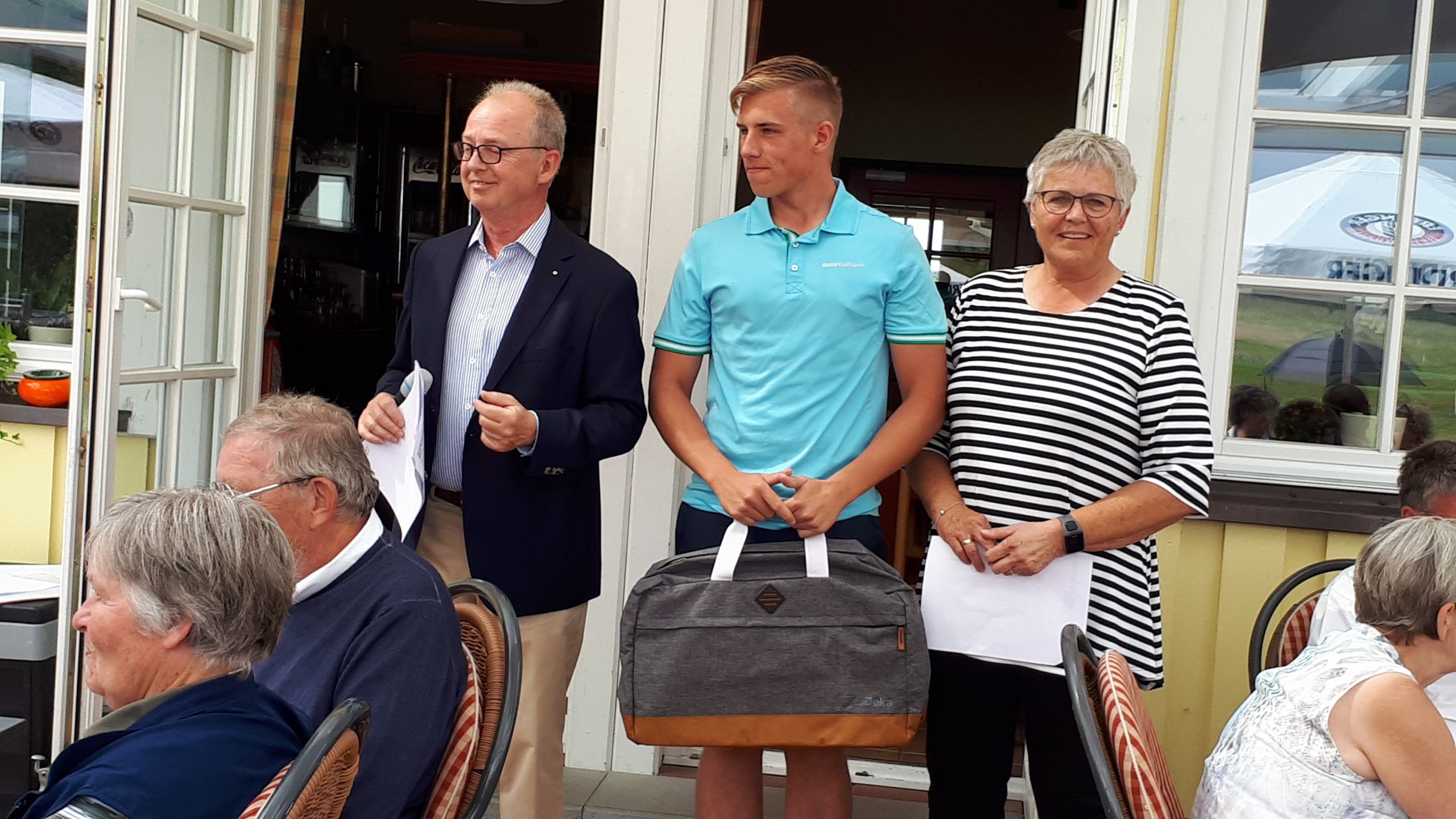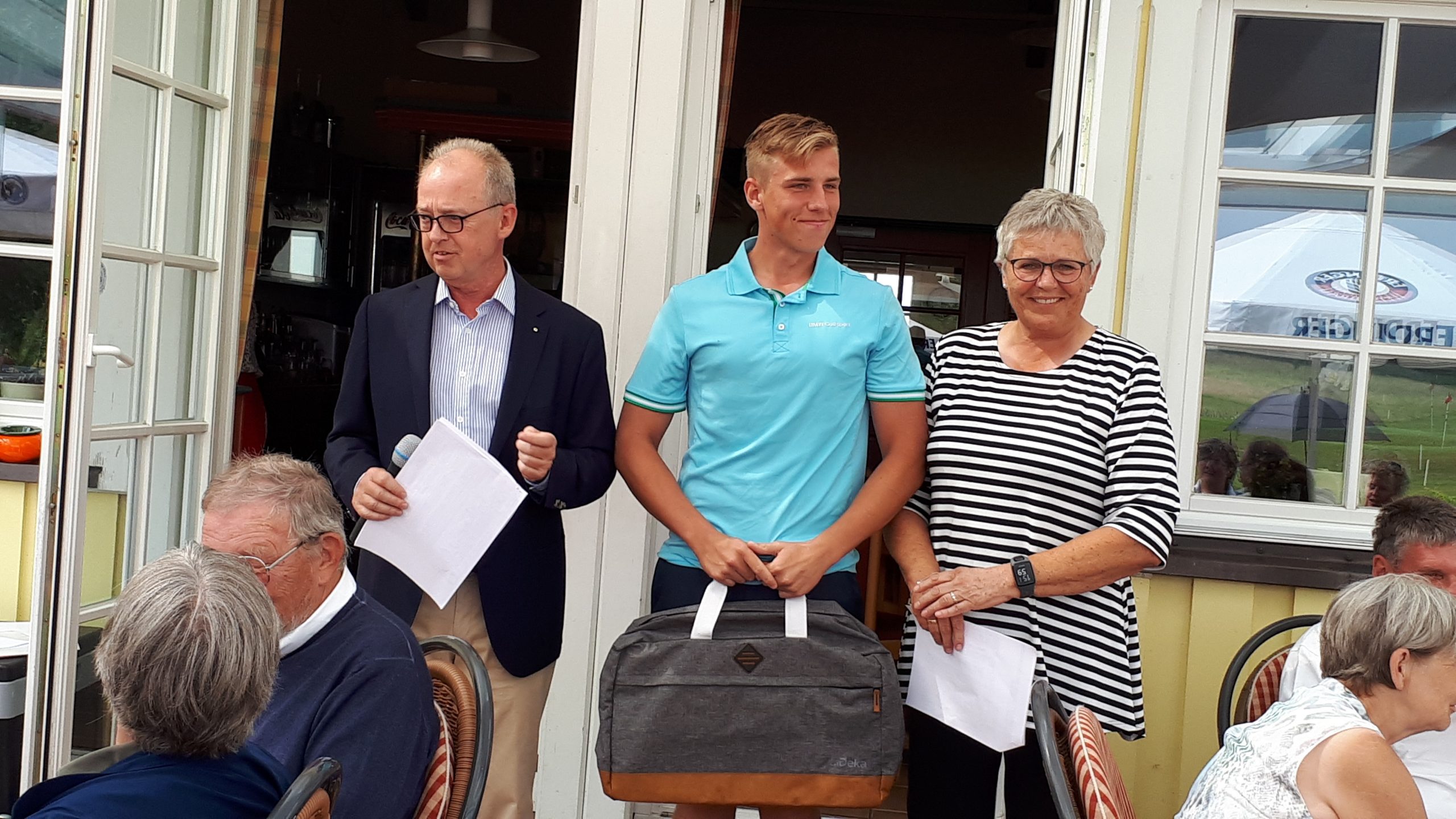 Es ist schon eigenartig, die ganzen Wochen vor diesem Turnier der Fördesparkasse nur allerbestes Wetter und dann pünktlich zum Startsignal fing es an zu nieseln und hörte erst bei Turnierende auf. Aber der guten Laune tat es keinen Abbruch, schließlich war man ja für einen guten Zweck unterwegs. Nachdem man sich dann das leckere Essen von Gudrun Raschke und ihrem Team hat schmecken lassen, ging es zur Siegerehrung durch Ulrich Boike. Netto-Sieger in der Klasse A wurde Tim-Hendrick Borchert, der gleichzeitig auch Brutto-Sieger wurde. In der Klasse B siegte Hermann Autzen und in der Klasse C Thomas Jundel. Den Brutto-Sieg bei den Damen holte sich Anna Bejeuhr vom GC Lohersand. Zusammen mit der Förderung der Sparkasse für jeden Nettopunkt, der Startgebühr und Spenden kam dann ein Betrag von 4.300 € zusammen.