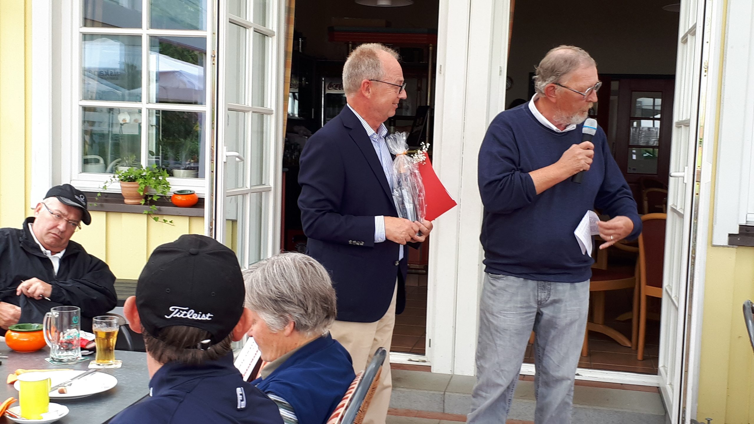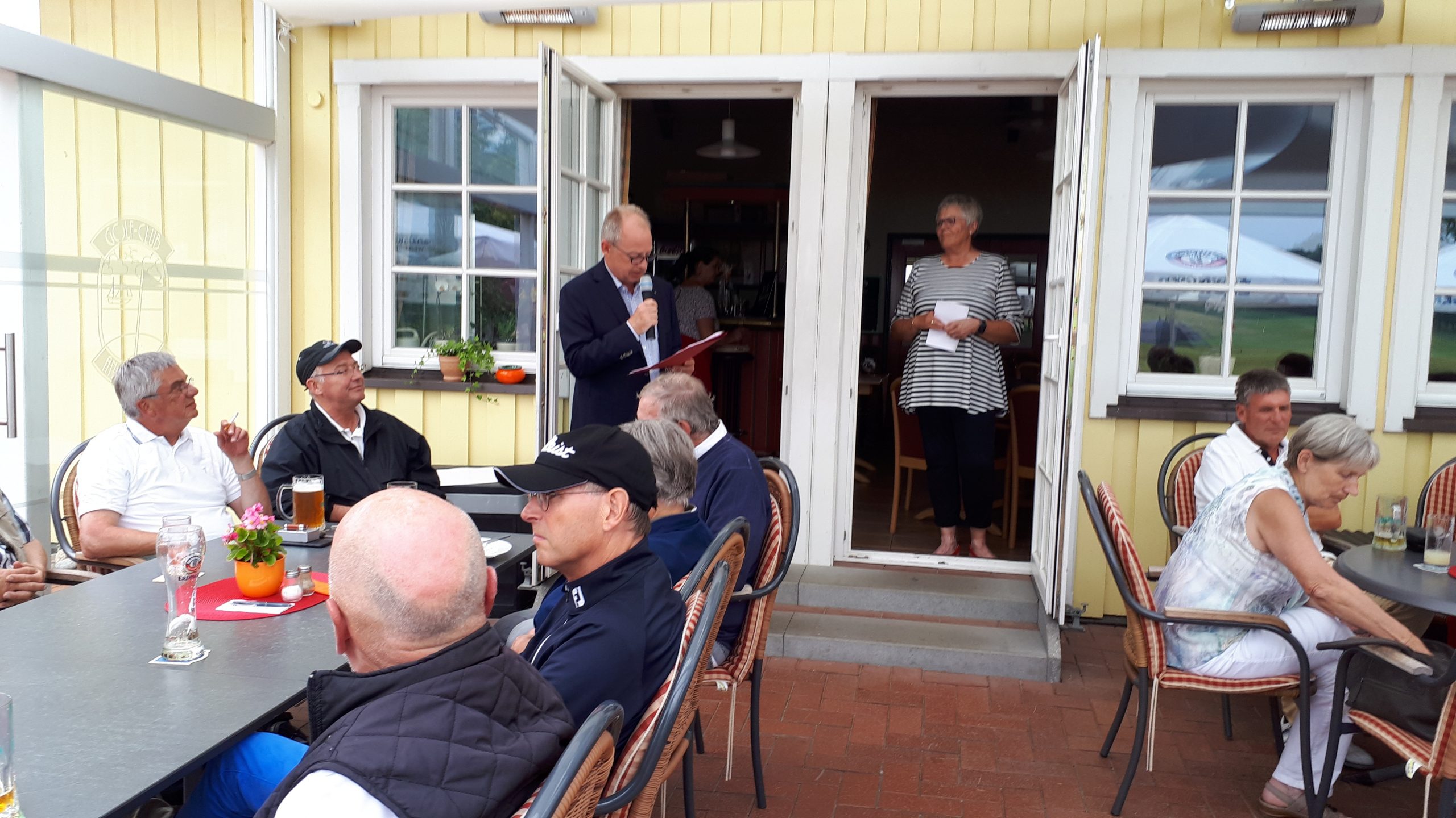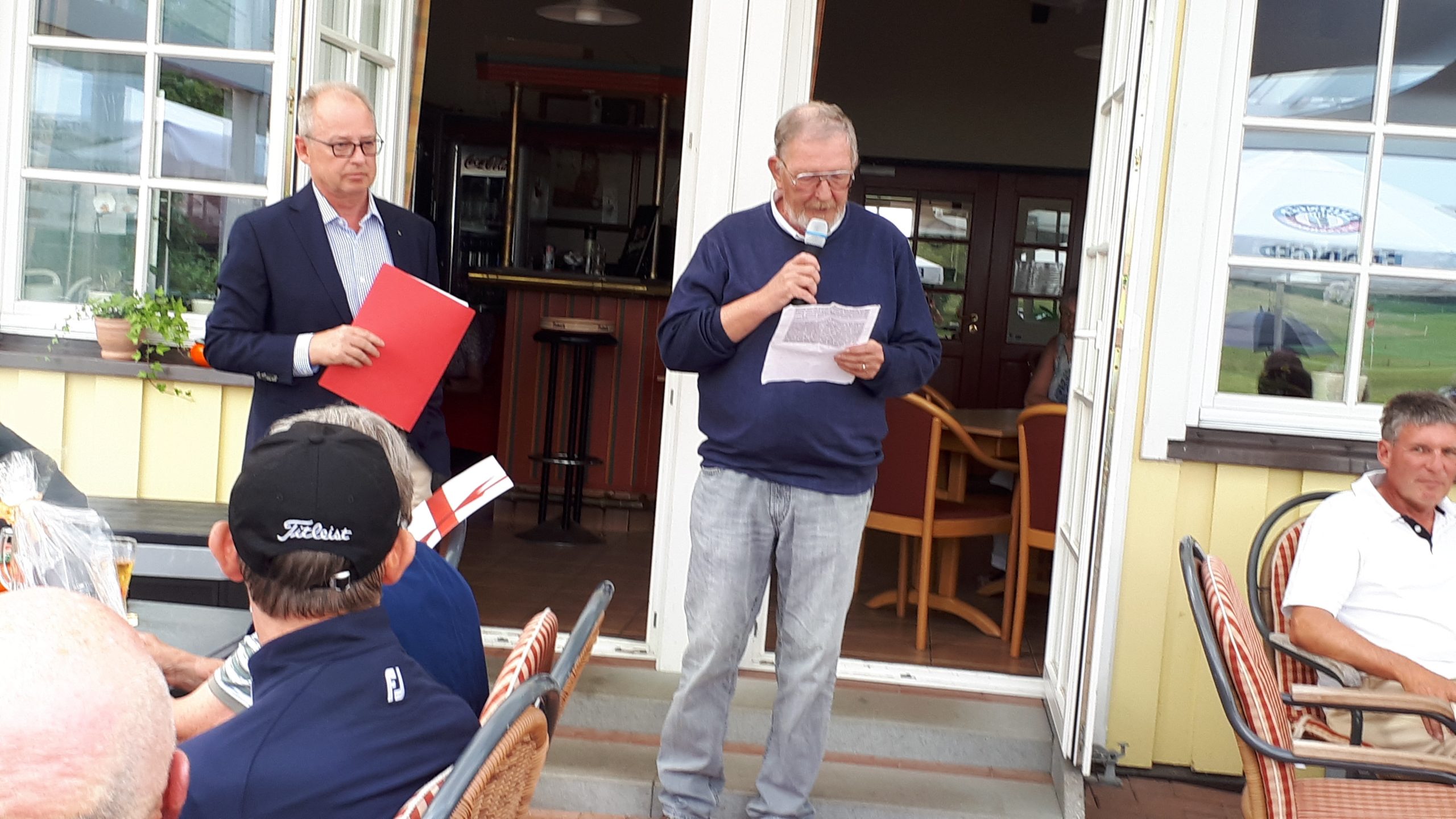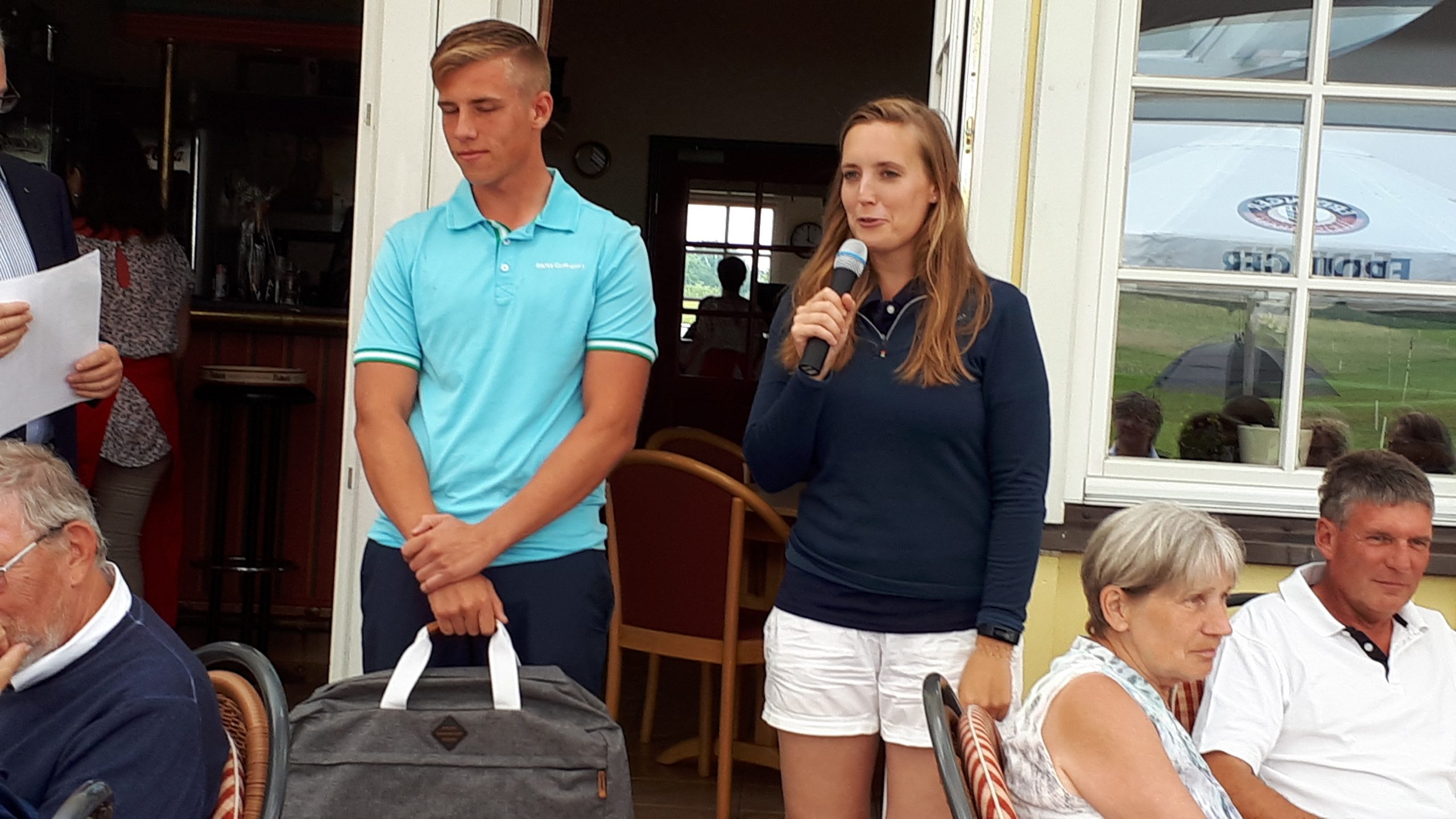 Es ist schon eigenartig, die ganzen Wochen vor diesem Turnier der Fördesparkasse nur allerbestes Wetter und dann pünktlich zum Startsignal fing es an zu nieseln und hörte erst bei Turnierende auf. Aber der guten Laune tat es keinen Abbruch, schließlich war man ja für einen guten Zweck unterwegs. Nachdem man sich dann das leckere Essen von Gudrun Raschke und ihrem Team hat schmecken lassen, ging es zur Siegerehrung durch Ulrich Boike. Netto-Sieger in der Klasse A wurde Tim-Hendrick Borchert, der gleichzeitig auch Brutto-Sieger wurde. In der Klasse B siegte Hermann Autzen und in der Klasse C Thomas Jundel. Den Brutto-Sieg bei den Damen holte sich Anna Bejeuhr vom GC Lohersand. Zusammen mit der Förderung der Sparkasse für jeden Nettopunkt, der Startgebühr und Spenden kam dann ein Betrag von 4.300 € zusammen.