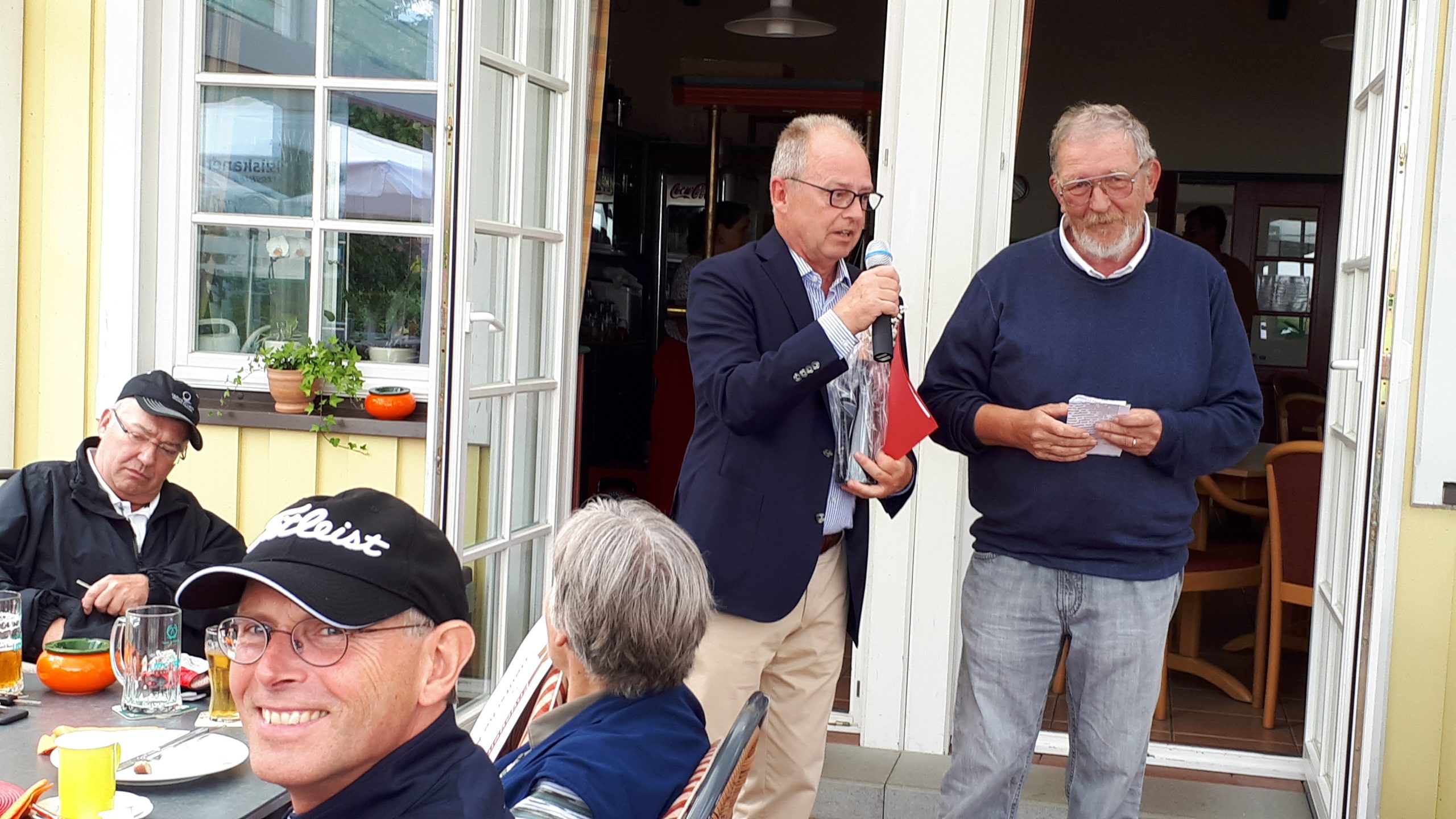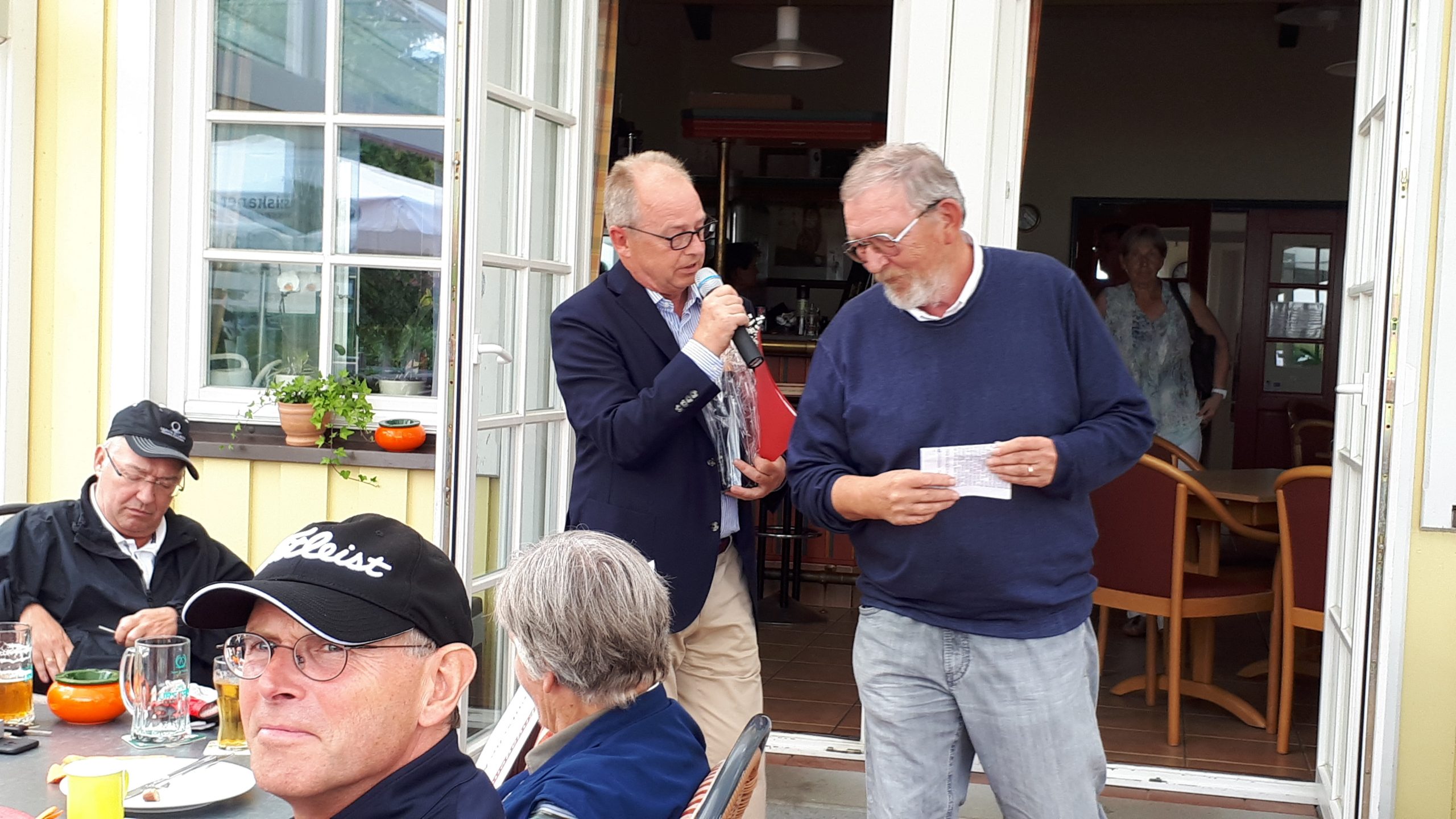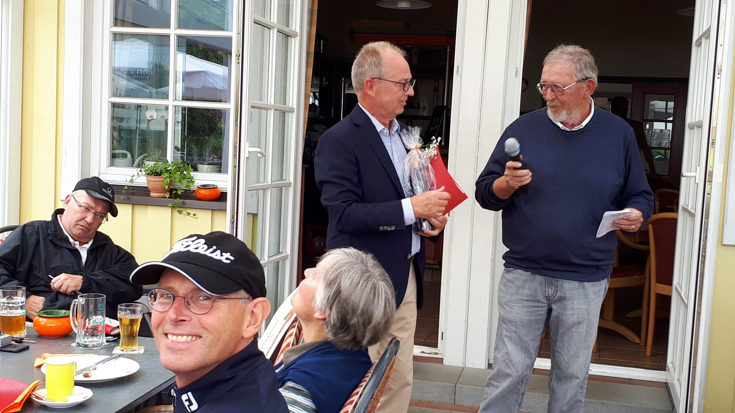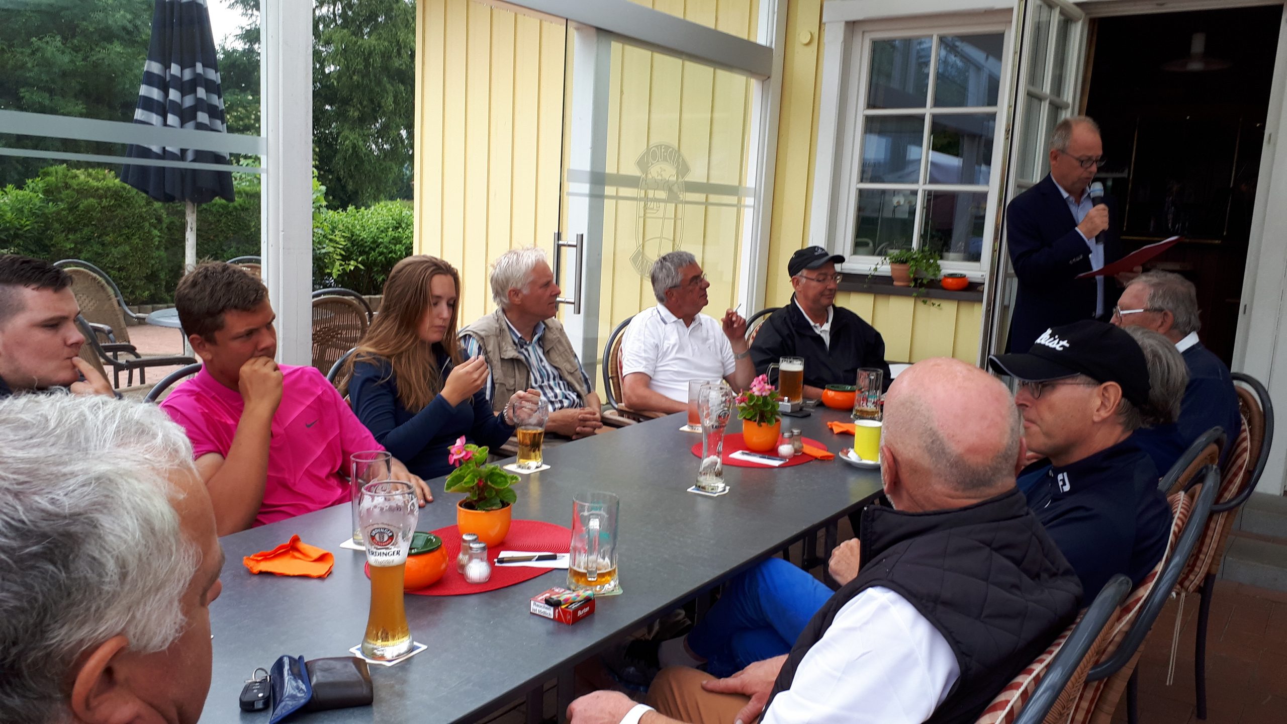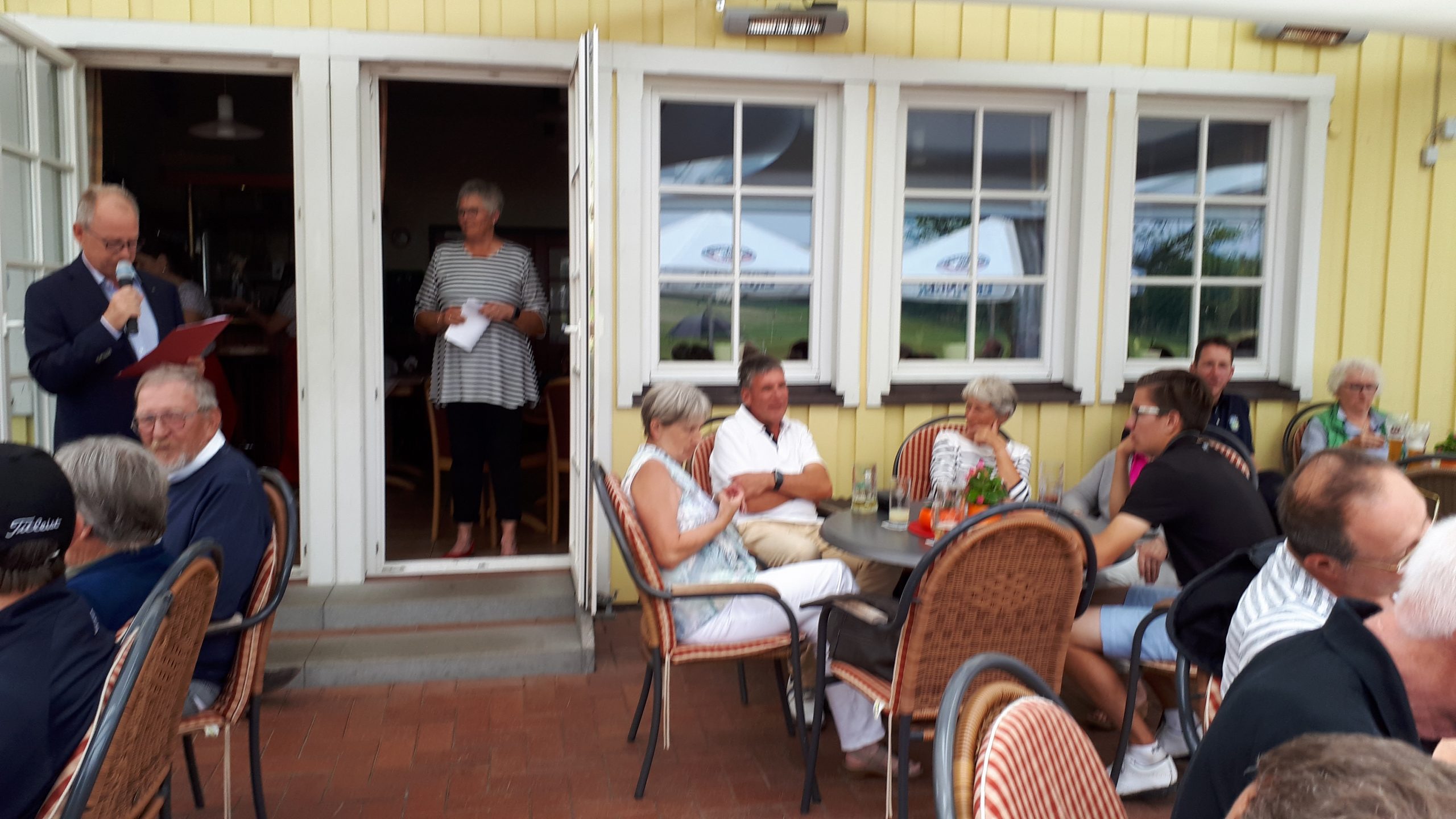 Es ist schon eigenartig, die ganzen Wochen vor diesem Turnier der Fördesparkasse nur allerbestes Wetter und dann pünktlich zum Startsignal fing es an zu nieseln und hörte erst bei Turnierende auf. Aber der guten Laune tat es keinen Abbruch, schließlich war man ja für einen guten Zweck unterwegs. Nachdem man sich dann das leckere Essen von Gudrun Raschke und ihrem Team hat schmecken lassen, ging es zur Siegerehrung durch Ulrich Boike. Netto-Sieger in der Klasse A wurde Tim-Hendrick Borchert, der gleichzeitig auch Brutto-Sieger wurde. In der Klasse B siegte Hermann Autzen und in der Klasse C Thomas Jundel. Den Brutto-Sieg bei den Damen holte sich Anna Bejeuhr vom GC Lohersand. Zusammen mit der Förderung der Sparkasse für jeden Nettopunkt, der Startgebühr und Spenden kam dann ein Betrag von 4.300 € zusammen.