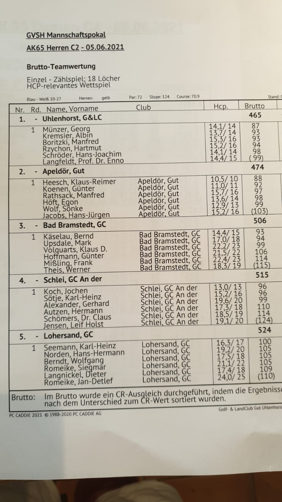 Unsere Mannschaft reihte sich mit 515 Schlägen hinter dem GC Bad Bramstedt (506)ein, konnte aber den GC Lohersand(524) hinter sich lassen.