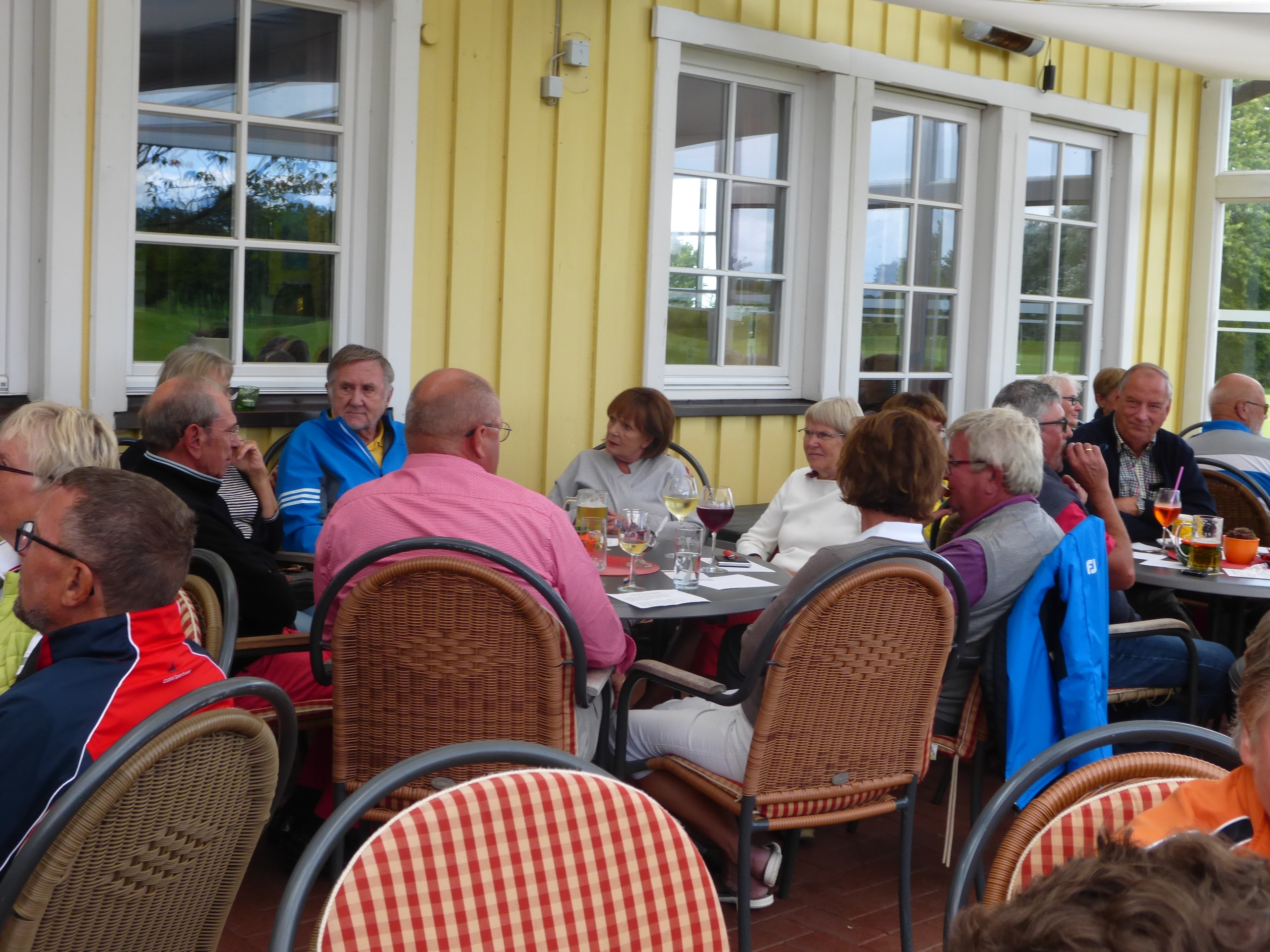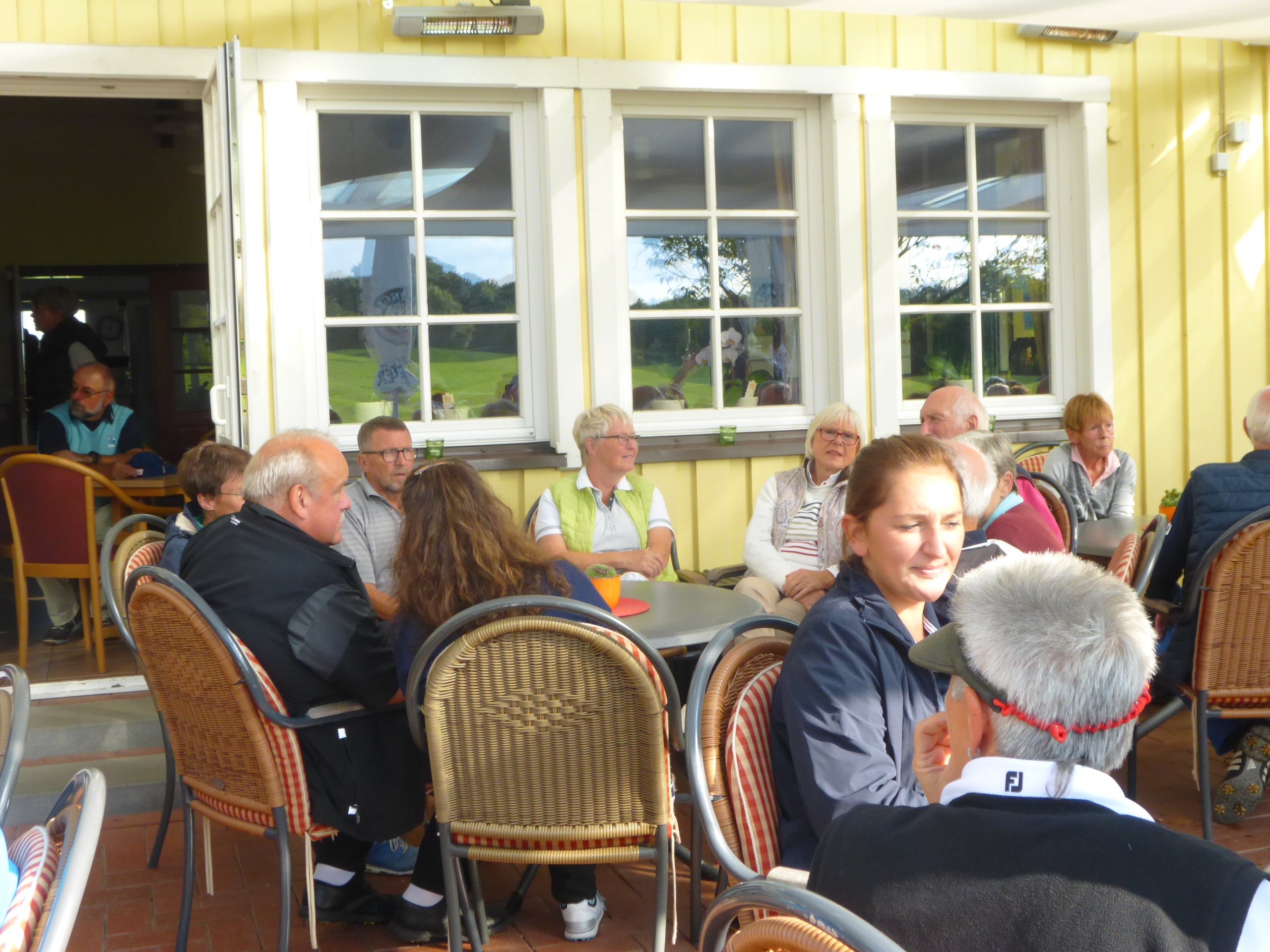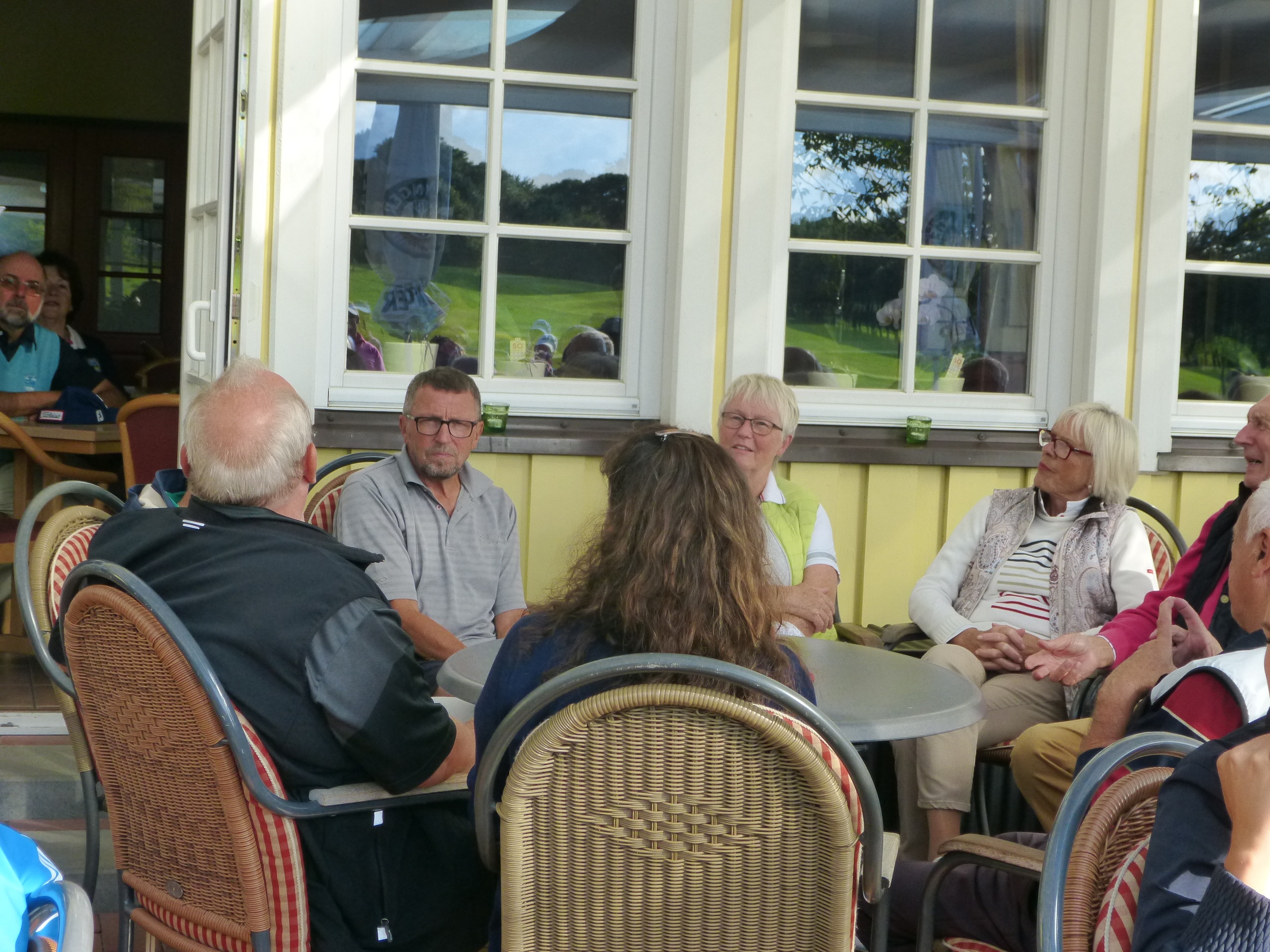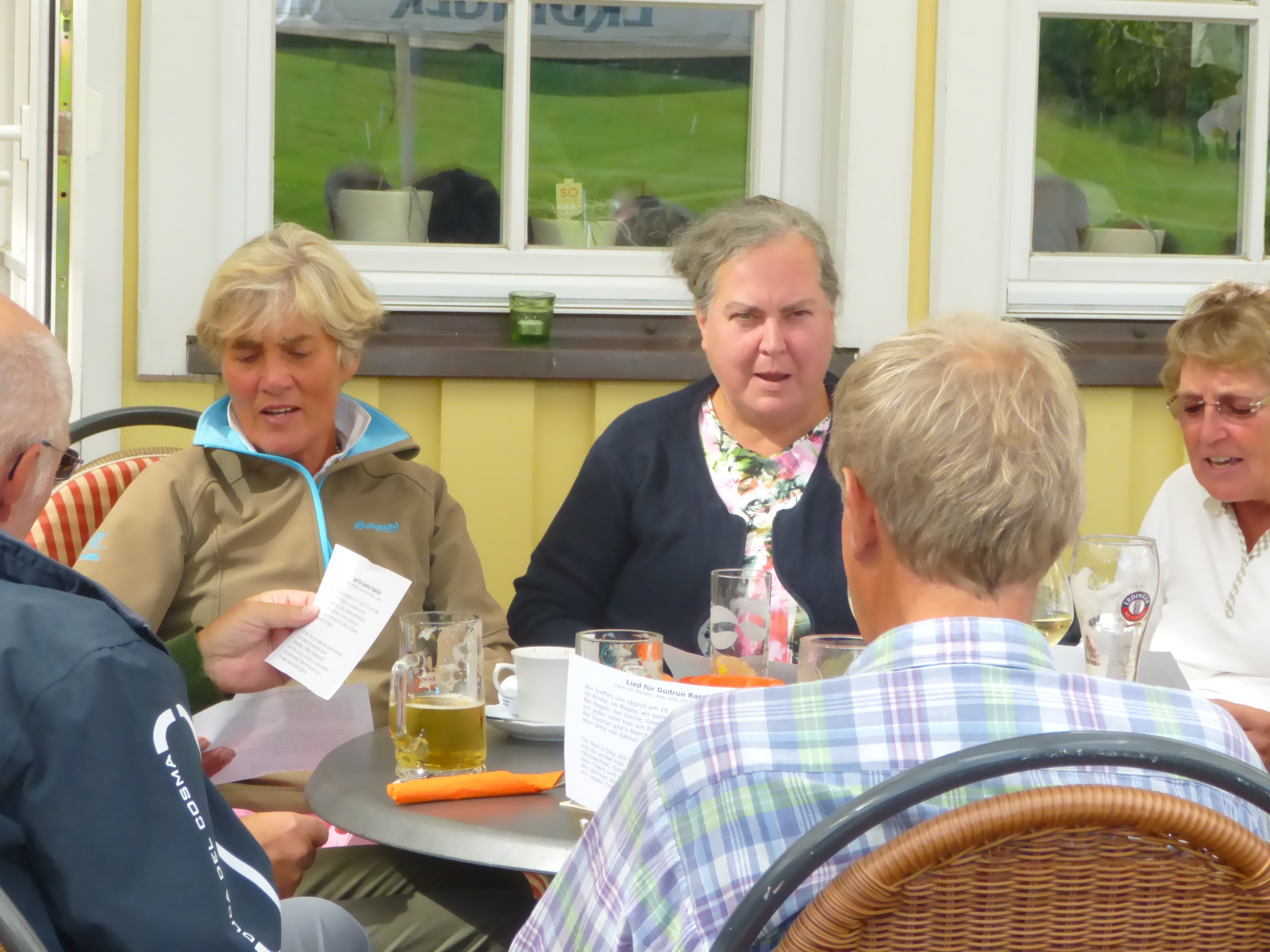 Wenn der Präsident ruft, und das zum 10. Mal, ist die Anmeldeliste schnell gefüllt. Nur mit dem Wettergott stand er in diesem Jahr nicht auf einem guten Fuß. Drei kurze und heftige Regengüsse, die zum nass werden reichten, gingen auf die Spieler nieder. Die allerdings ließen sich die Laune nicht verderben. Wurde doch ein Texasscramble zu viert gespielt und das mit Partnern, die man sich aussuchen konnte. Solche Turniere spielt man dann doch gerne. Fröhlich, mit guten Ergebnissen kamen die Spieler wieder im Loch 19 an, wo schon das leckere Essen, das Gudrun Raschke mit ihrem Team servierten, wartete.