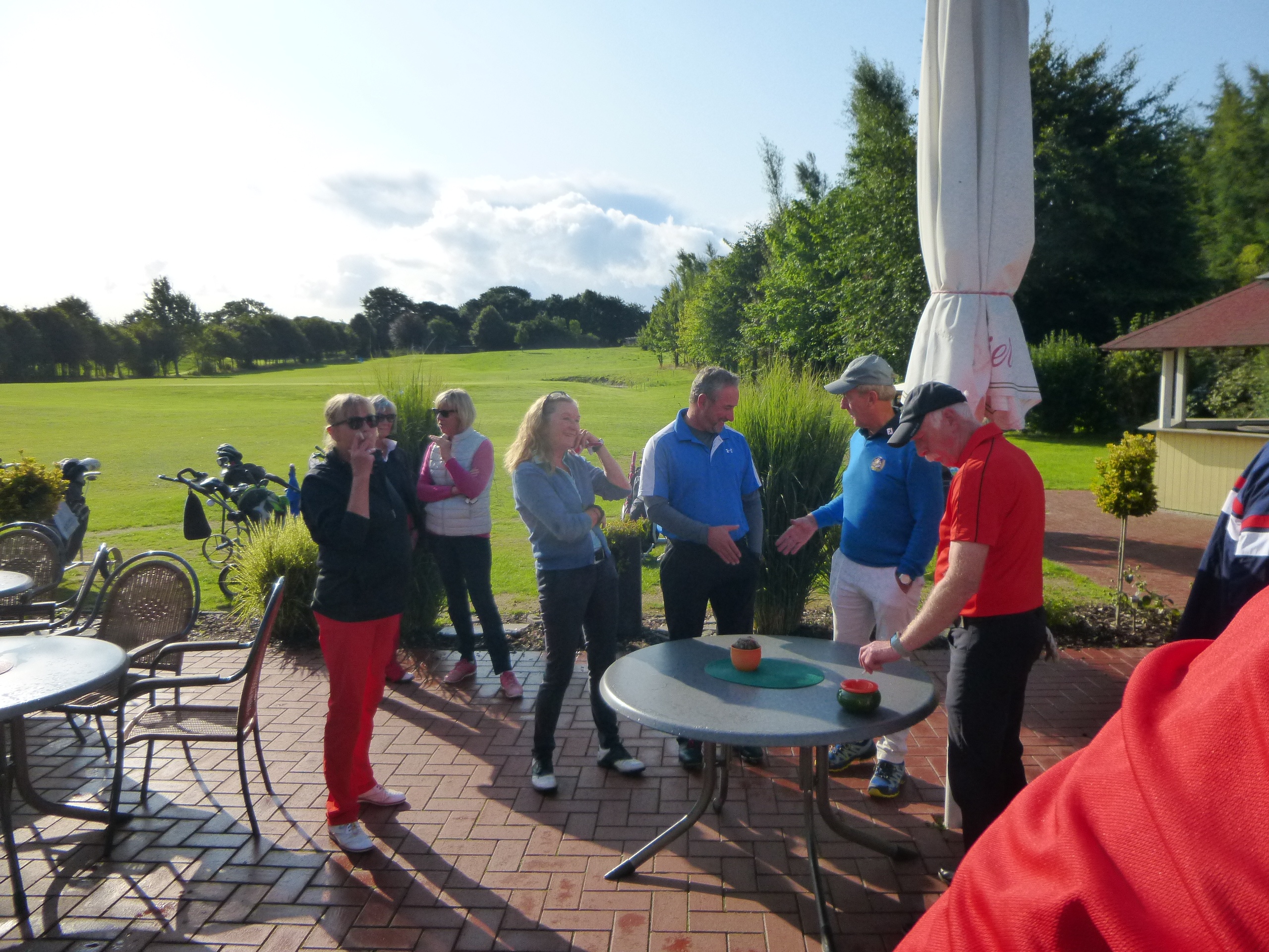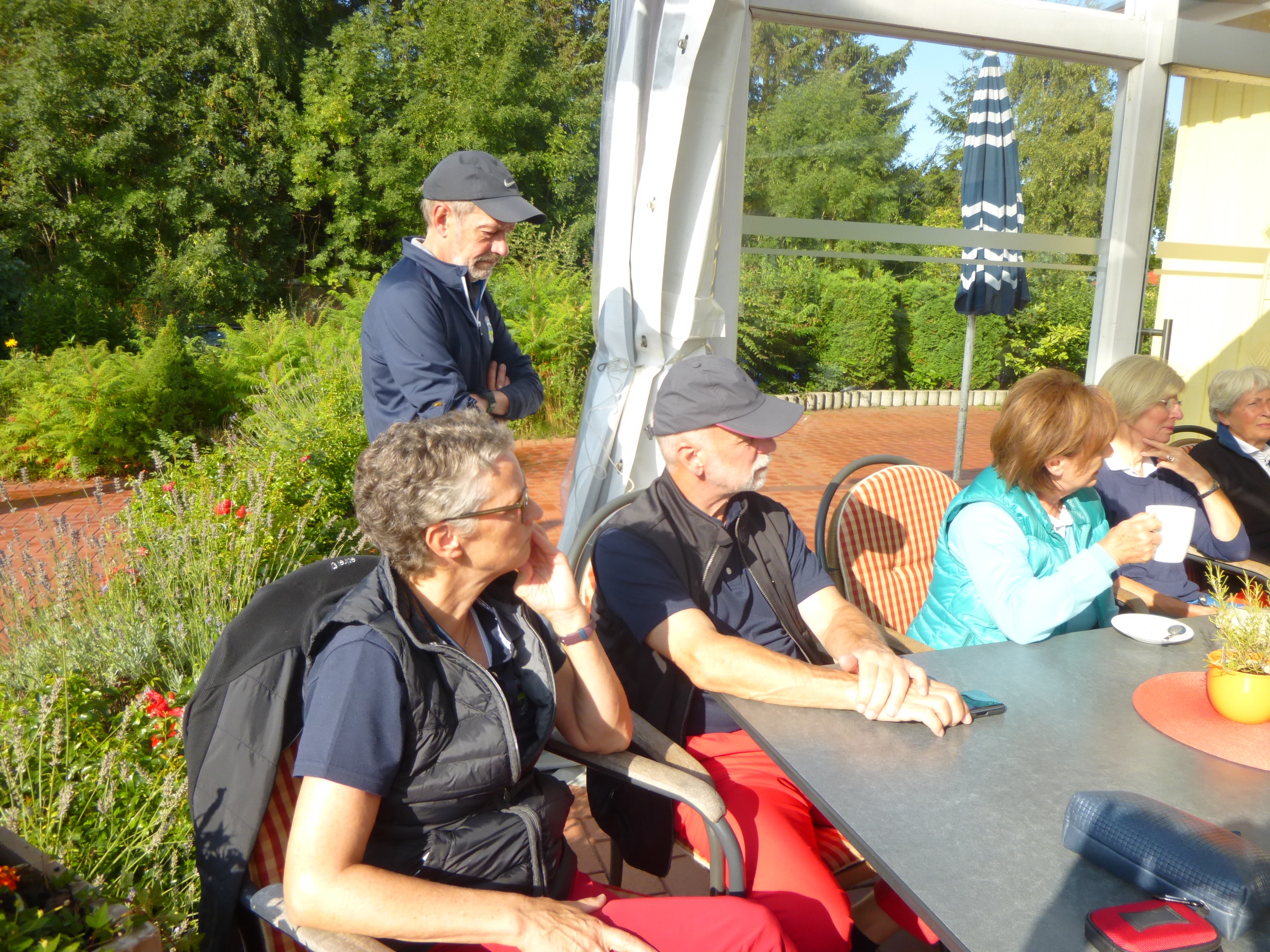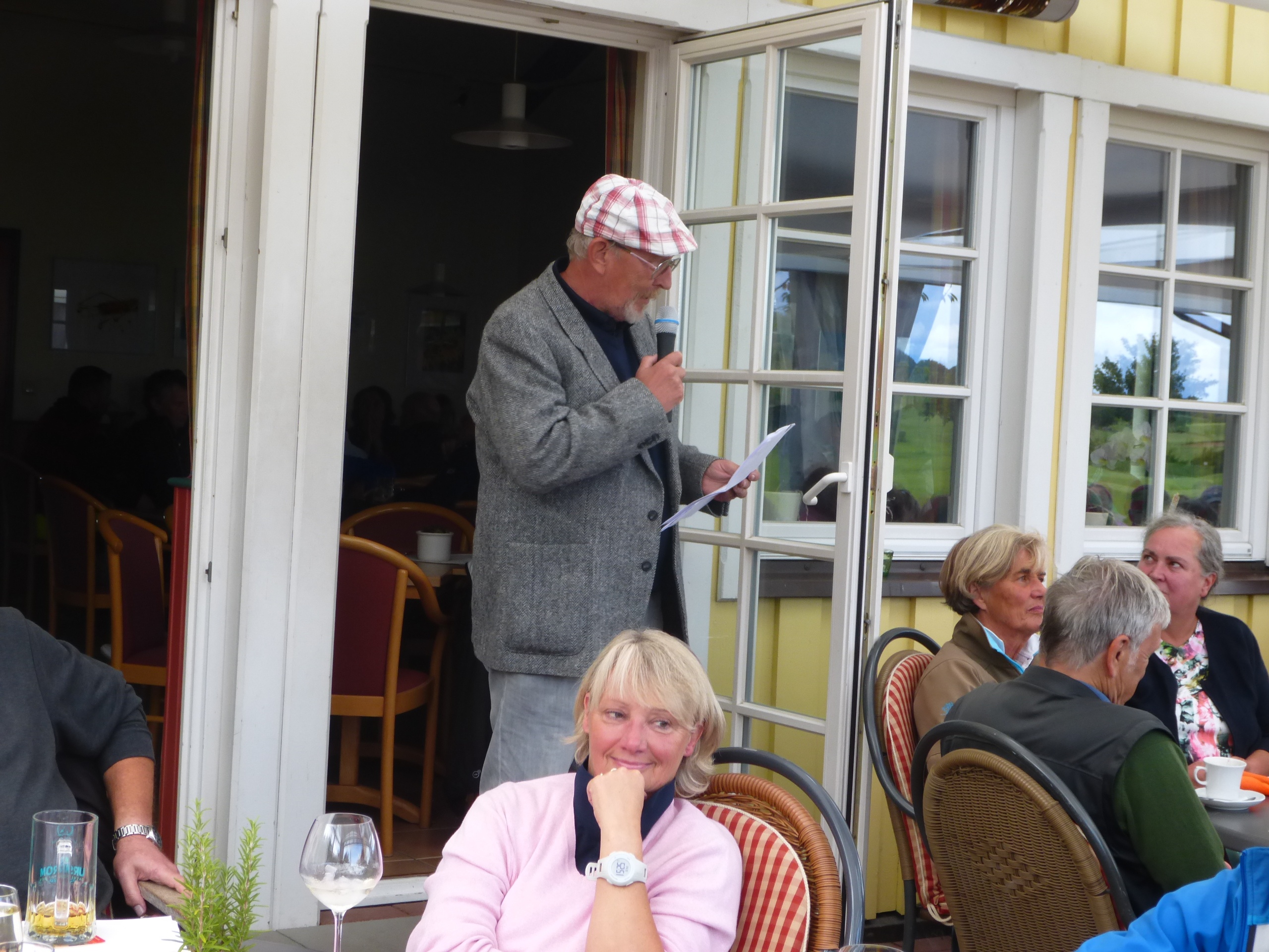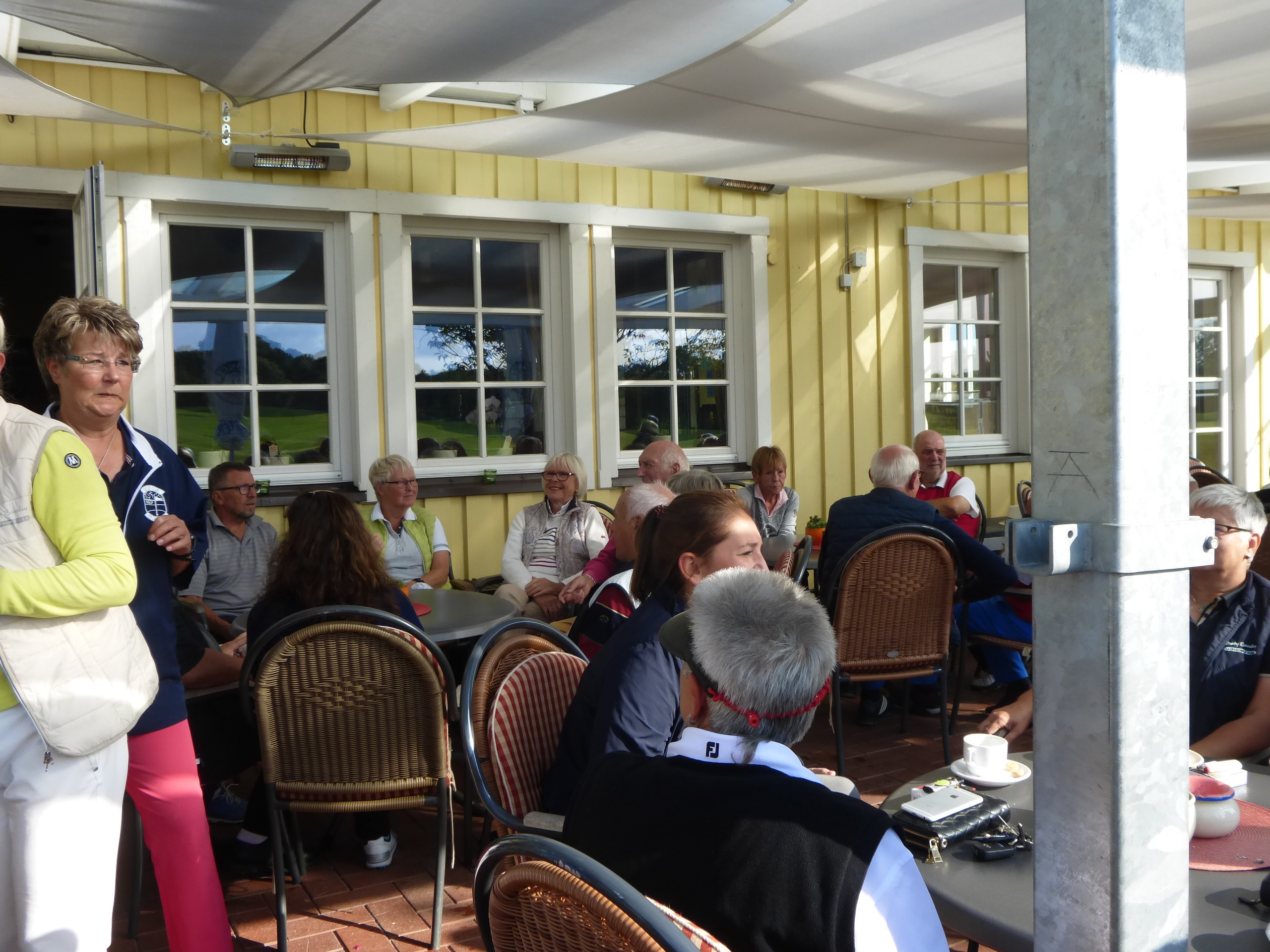 Wenn der Präsident ruft, und das zum 10. Mal, ist die Anmeldeliste schnell gefüllt. Nur mit dem Wettergott stand er in diesem Jahr nicht auf einem guten Fuß. Drei kurze und heftige Regengüsse, die zum nass werden reichten, gingen auf die Spieler nieder. Die allerdings ließen sich die Laune nicht verderben. Wurde doch ein Texasscramble zu viert gespielt und das mit Partnern, die man sich aussuchen konnte. Solche Turniere spielt man dann doch gerne. Fröhlich, mit guten Ergebnissen kamen die Spieler wieder im Loch 19 an, wo schon das leckere Essen, das Gudrun Raschke mit ihrem Team servierten, wartete.