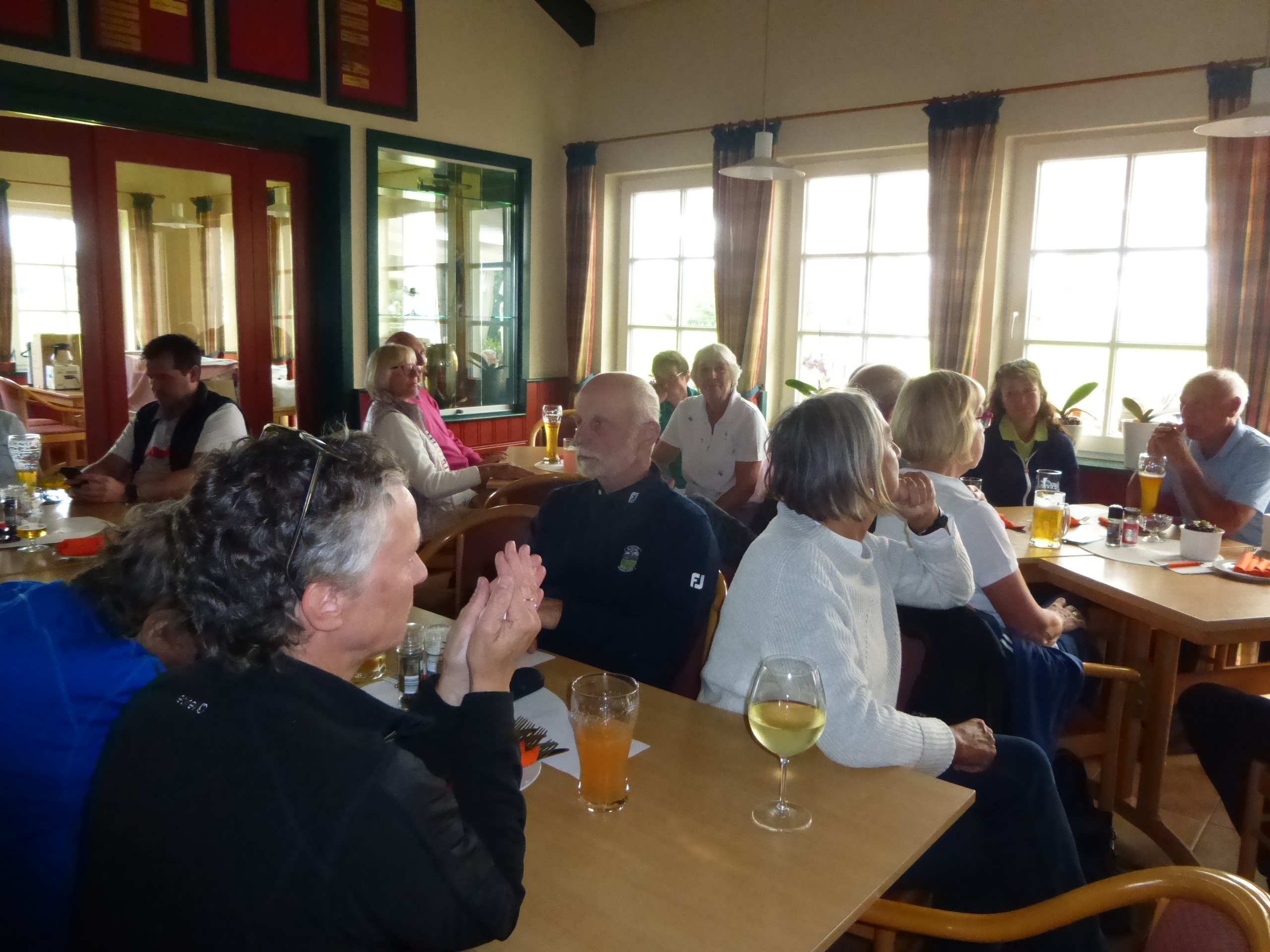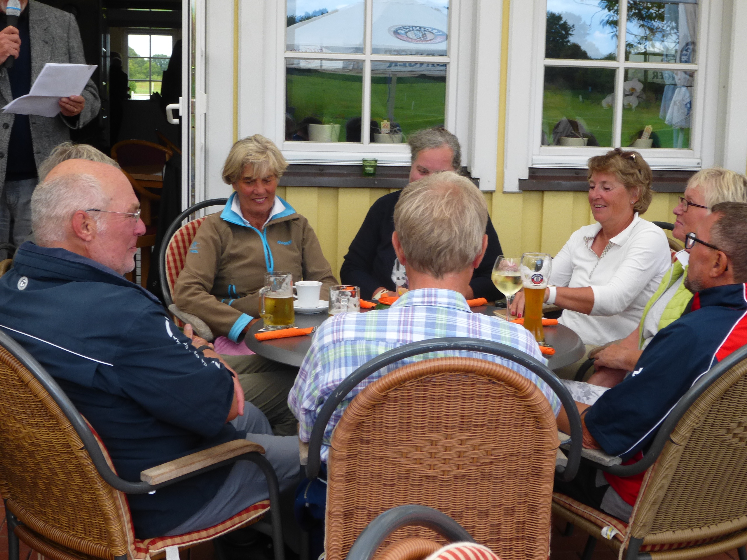 Nun konnte es zur Siegerehrung gehen: Netto-Sieger wurden Timo Jacobsen mit Frank Andresen, Maren Nagel und Hannelore Böhrensen, ihnen folgten Sabine Stanjek mit Kay Ebberfeld, Dr. Otto und Sabine Kloppenburg. Der dritte Platz ging an den Lahme-Clan Dr. Jörg, Dr. Tilmann, Julius und Erik. Brutto-Sieger wurden Heinrich Stoltenberg mit Dirk Tegge, Angela Möller und Brigitte Hauss-Wiedemann.