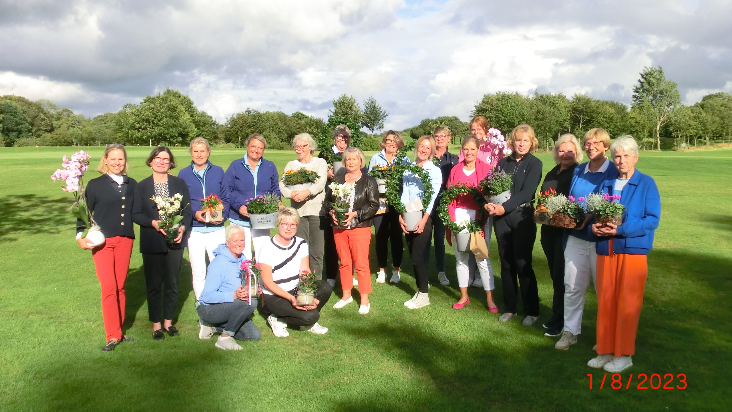 Nach dem Essen ging es an die Siegerehrung. Trotz der schwierigen Wetterlage wurden gute Ergebnisse erzielt. Die Bruttowertung gewannen mit 23 Punkten Claudia von Grundherr-Weber (Lohersand) mit Claudia Kube (Altenhof). Zweite in der Bruttowertung wurden Cathrin Ulmer und Elke Zollweg (beide GC Neuhof) mit 20 Punkten. Den Sieg in der Nettowertung bis HCP 45,2 konnten sich Captain Angelika Autzen und die jüngste im Feld Luisa Sarcina sichern. 39 Punkte waren der Bestwert an diesem Tag. Der zweite Platz ging an Claudia Schaper und Nikola Weller von Ahlefeld (beide GC Stenerberg), den Dritten machten Anne Mette Jensen und Harriet Bersch. In der Nettowertung ab 45,3 setzten sich Petra Kruse und Brigitte Süverkrüp (beide GC Altenhof) durch. 38 Nettopunkte mussten es für den 1. Platz sein. Ulrike Maager und Angela Schömers konnten sich auf den 2. Platz spielen. Andrea Christensen und Laima Vogt (beide GC Husum) sicherten sich Platz 3. Die Sonderwertung Nearest to the line gewann Angela Schömers. Nearest to the pin ging an Harriet Bersch. Angelika Autzen und Angelika Merten hatten für alle Gewinnerinnen wunderschöne Blumen als Gewinne besorgt, die Gewinnerinen konnten sich in der Reihenfolge der Preisvergabe selbst ihre Lieblingsblume aussuchen.