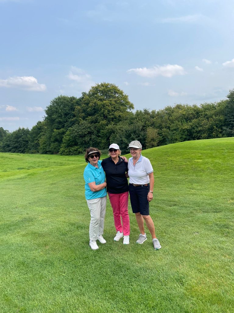 Um 13 Uhr startete dann der sportliche Teil des Tages: 18 anspruchsvolle Löcher lagen vor den Damen, die sich bei strahlendem Sonnenschein und hohen Temperaturen den Herausforderungen des Golfplatzes stellten. Die Hitze stellte zusätzliche Anforderungen an die Kondition und Konzentration der Spielerinnen. Doch die Organisatorin hatte auch hier vorgesorgt: An Tee 10 wartete Wilma Schwarz gemeinsam mit Barbara Marek auf die Teilnehmerinnen und bot eine liebevoll gestaltete Halfway-Verpflegung an. Selbst gebackener Kuchen, frischer Kaffee und Dooleys-Likör sorgten für die nötige Stärkung und versüßten den Damen den Übergang in die zweite Turnierhälfte.