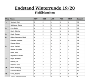 Wir konnten zwar unsere Winterrunde nicht bis zum Ende ausspielen, dennoch gab es selbstverständlich ein Ergebnis.