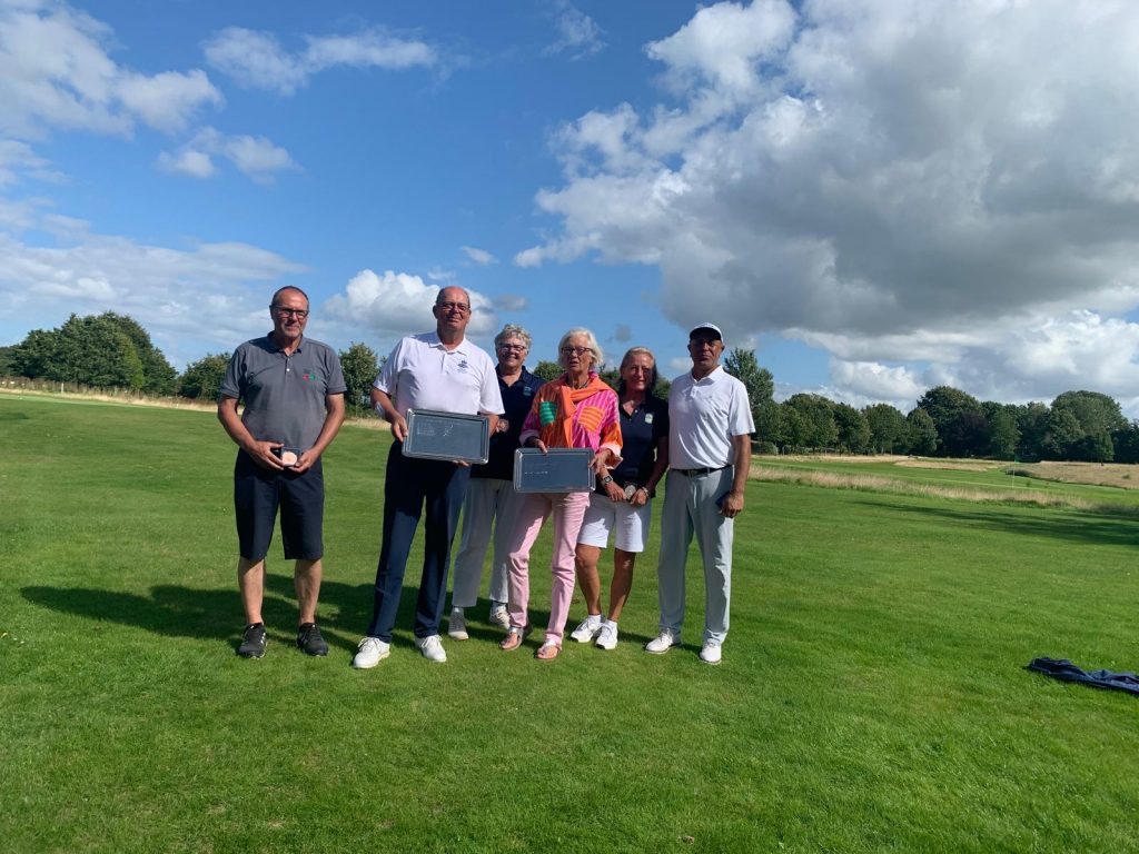Bei bestem Wetter starteten die AK30er ab 9 h auf Tee 10 und parallel dazu die AK65er auf der Bahn 1. Unsere 3 Damen konnten sich mit soliden Runden auf den Plätzen 4 (Sabine Damm), 3 (Anne Mette Jensen) und 2 (Petra Massolle) festspielen. Sie mussten sich lediglich Susanne Eggers vom GC Sylt geschlagen geben, die sich aber mit einer guten Runde bereits nach Tag 1 einen guten Vorsprung erarbeitet hatte. Bei den Herren deutet sich ein spannender Kampf an, lagen die Plätze 1-7 doch lediglich 5 Schläge auseinander. Hier ging nach Tag 1 Stefan Sievert (GC Segeberg) vor Bahman Khosravi (GC Sylt) und Werner Boß (GC Großensee) in Führung.