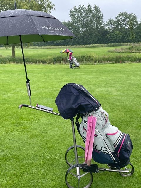 Am zweiten Spieltag sah es dann wettertechnisch – gelinde ausgedrückt – nicht ganz so gut aus, deshalb entschied die Spielleitung, das Turnier, welches als Einzel-Stabelford gespielt wurde, auf 9 Loch zu reduzieren. Das regnerische Wetter schlug sich auch in der Teilnehmerzahl nieder, es waren lediglich 15 Ladies am Start. An diesem Spieltag war das Motto „Kulinarik“ und es gab zwei Brutto-Preise und jeweils 3 Netto-Preise in 3 Wertungsklassen. Den ersten Platz in der Brutto-Wertung belegte Stephanie Zilch mit 9 Bruttopunkten, gefolgt vom Britta Stork mit 5 Bruttopunkten. Den ersten Nettoplatz in der Klasse A belegte Harriet Bersch, in der Klasse B Kathrin Hansen und in der Klasse C Karena Rolla du Rosey.