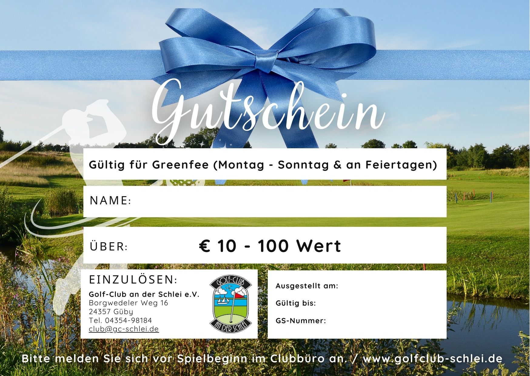Der Gutschein kann nur für Greenfee auf den Golf-Club an der Schlei für den angegebenen Zeitraum eingelöst werden